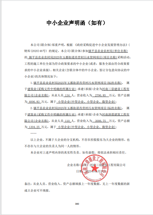 镇平县农业农村局2025年玉都街道肖营村污水管网项目-成交公告