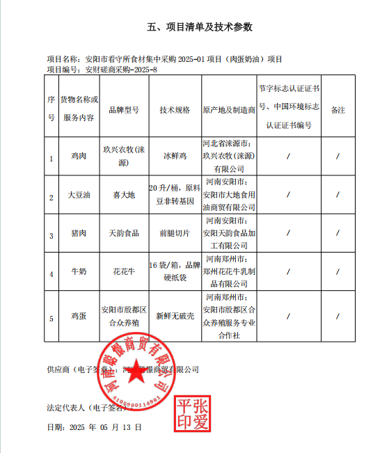 安阳市看守所食材集中采购2025-01项目(肉蛋奶油)项目-成交公告