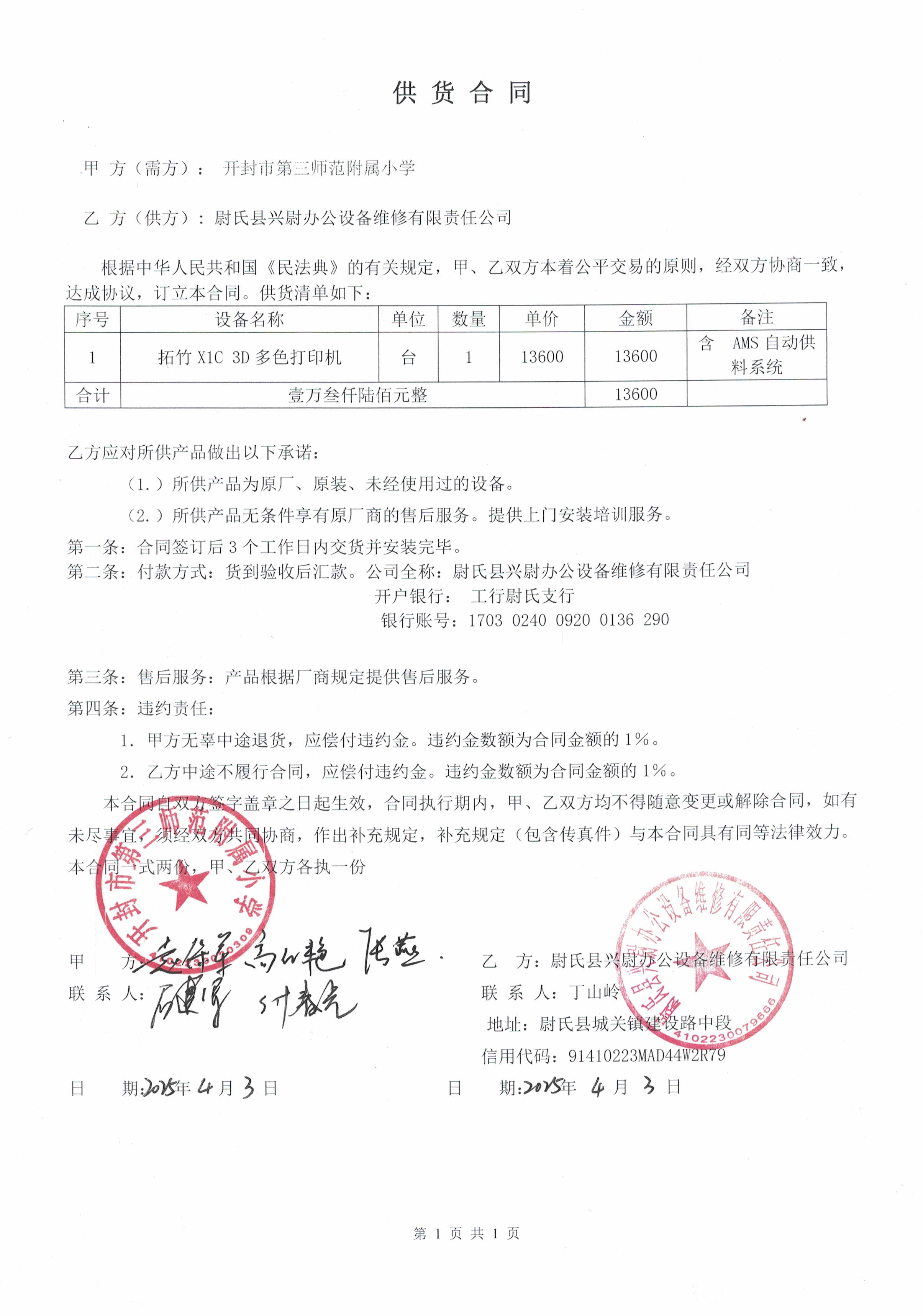 | *.供应商(乙方):尉氏县兴尉办公设备维修有限责任公司 | ||||||||||||