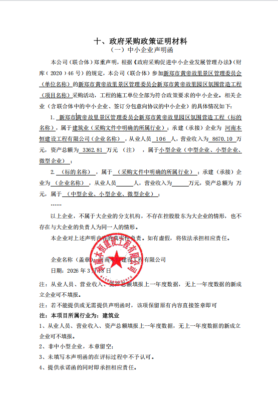 新郑市黄帝故里景区管理委员会新郑市黄帝故里园区氛围营造工程-成交公告