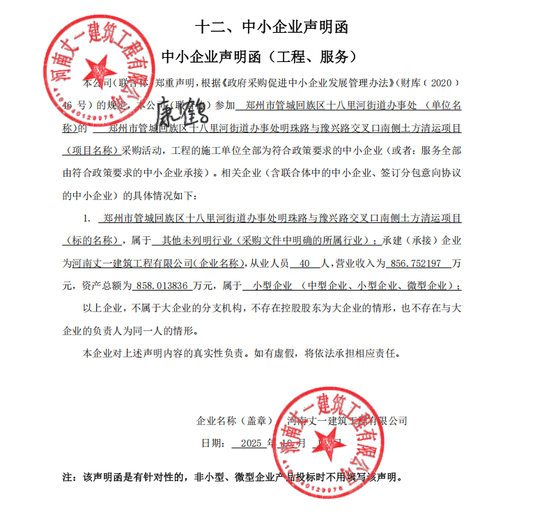 | *、采购项目名称:郑州市管城回族区十八里河街道办事处明珠路与豫兴路交叉口南侧土方清运项目 | |||||||||||||||||||||||||||||||