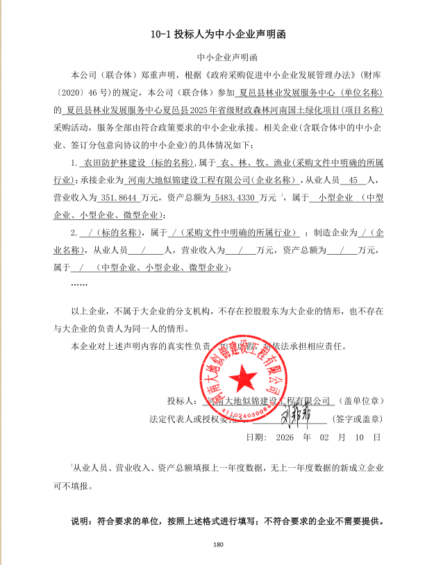 夏邑县林业发展服务中心夏邑县2025年省级财政森林河南国土绿化项目中标结果公告