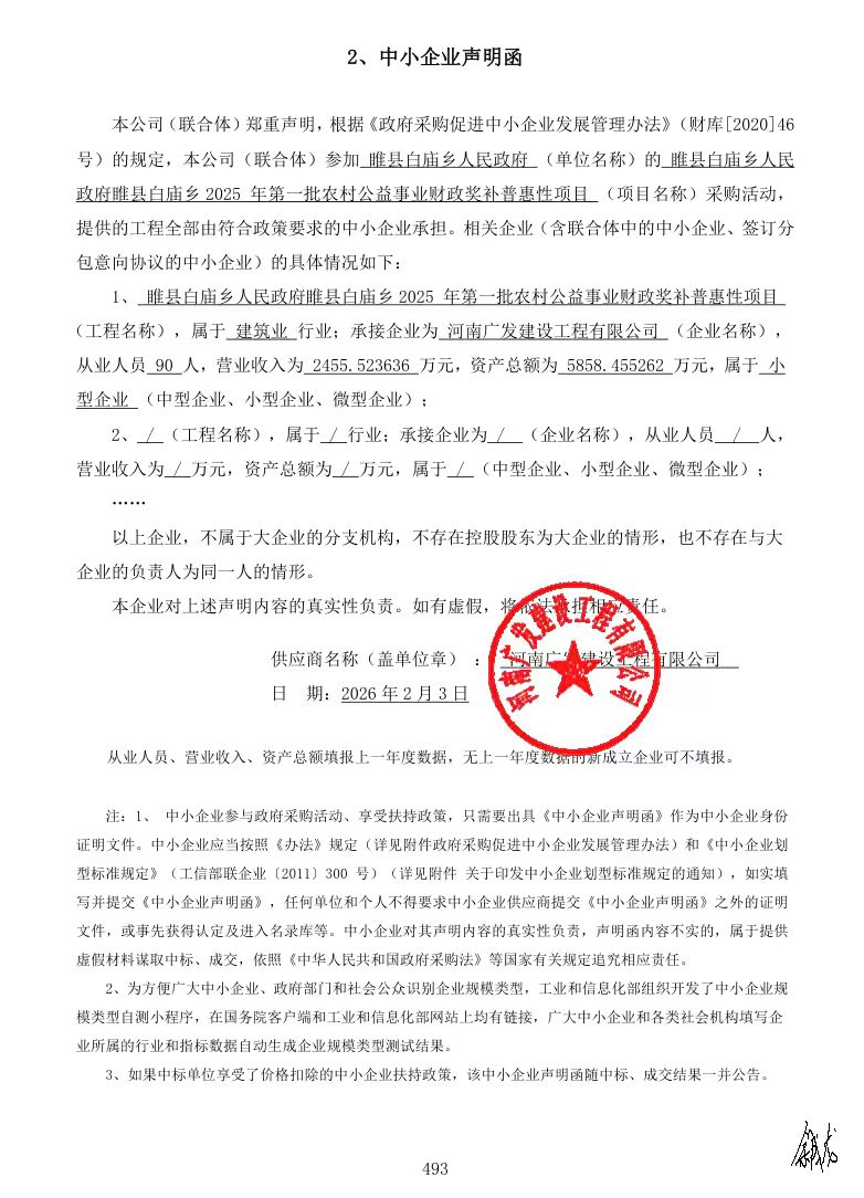 睢县白庙乡人民政府睢县白庙乡2025年第一批农村公益事业财政奖补普惠性项目结果公告