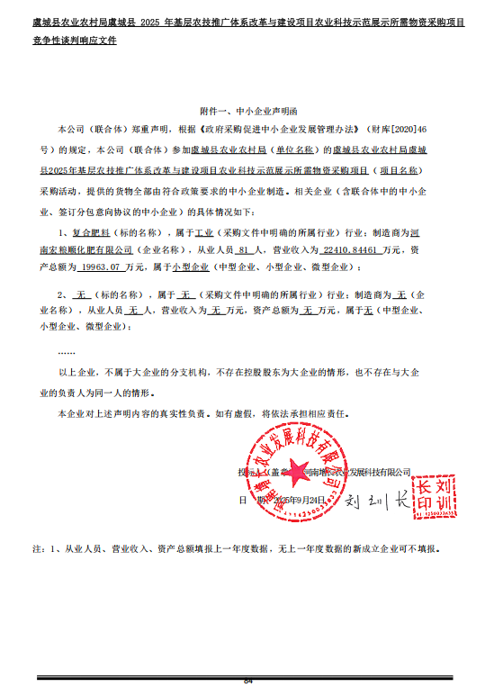 虞城县农业农村局虞城县2025年基层农技推广体系改革与建设项目农业科技示范展示所需物资采购项目-成交公告