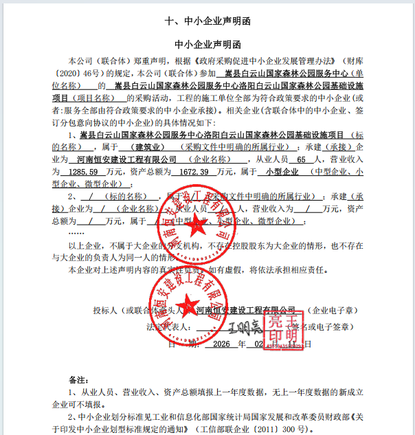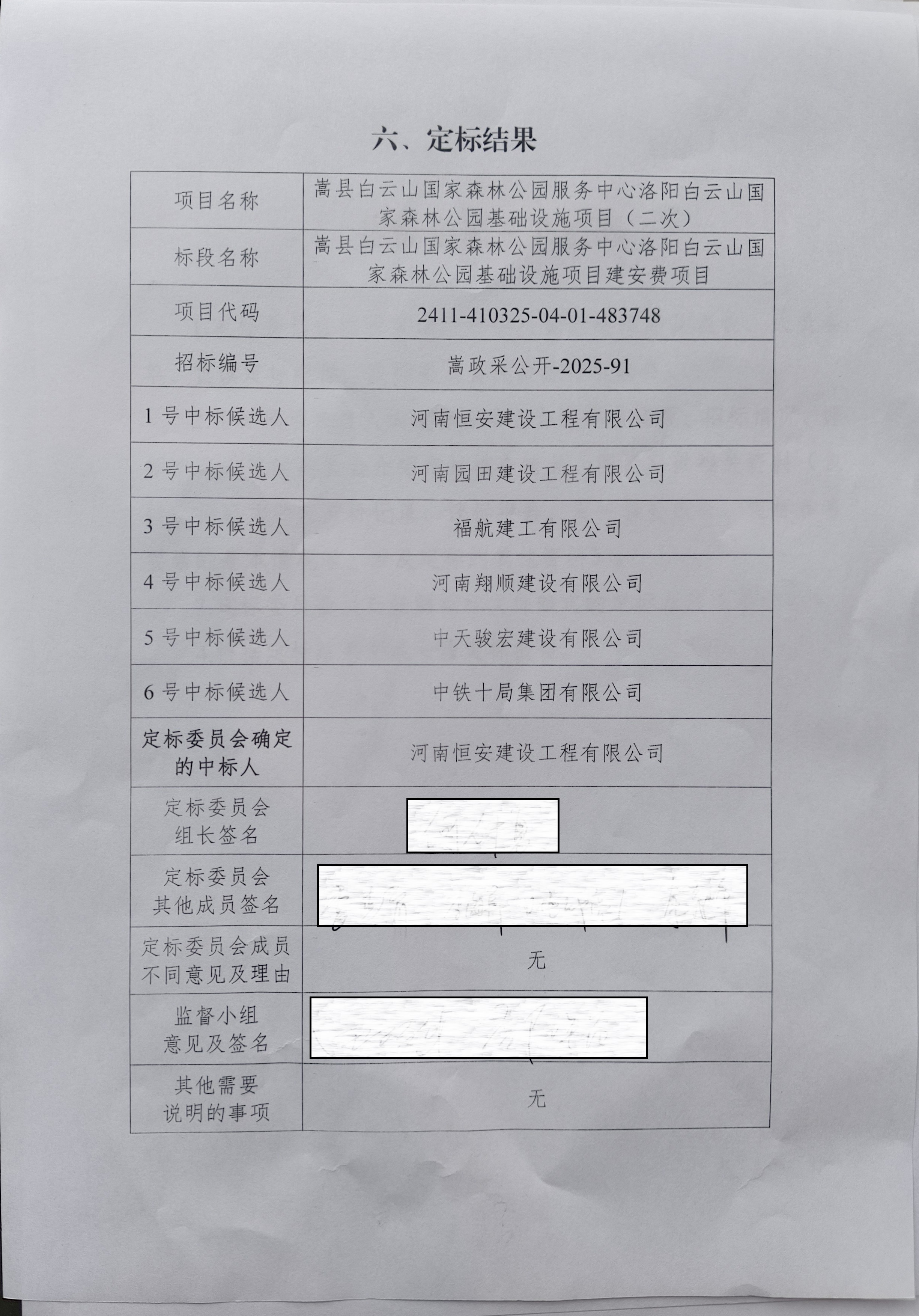嵩县白云山国家森林公园服务中心洛阳白云山国家森林公园基础设施项目建安费项目-中标公告