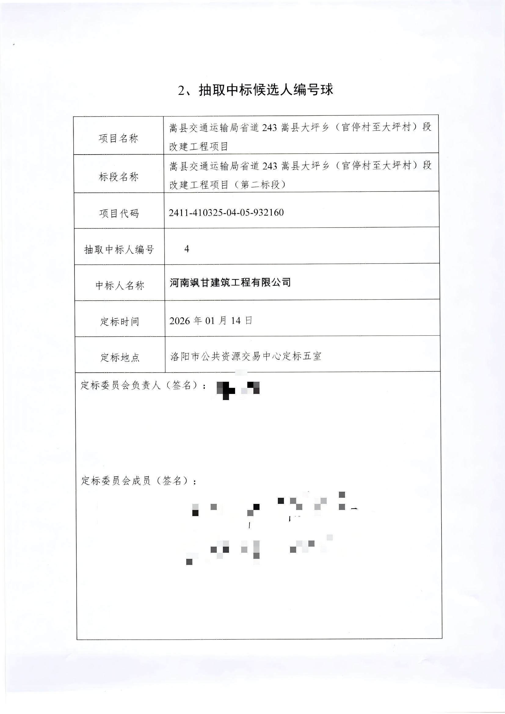 *、标段名称:嵩县交通运输局省道***嵩县大坪乡(官停村至大坪村)段改建工程项目(第二标段)