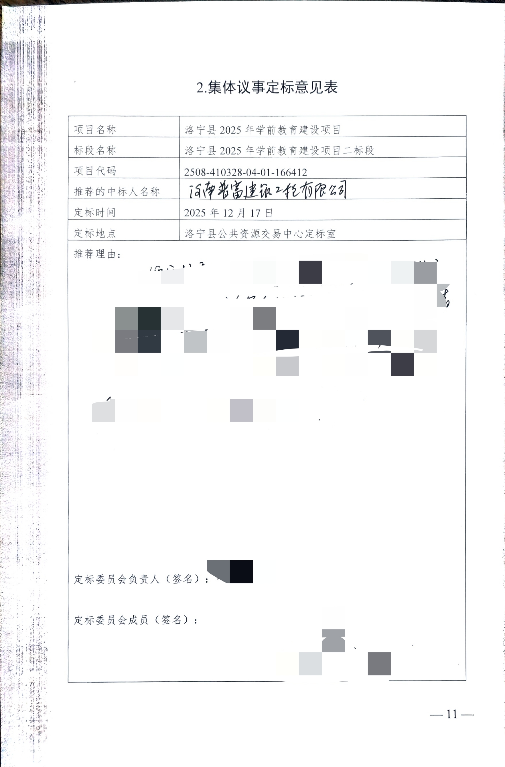 洛宁县教育体育局洛宁县****年学前教育建设项目二标段中标结果公告