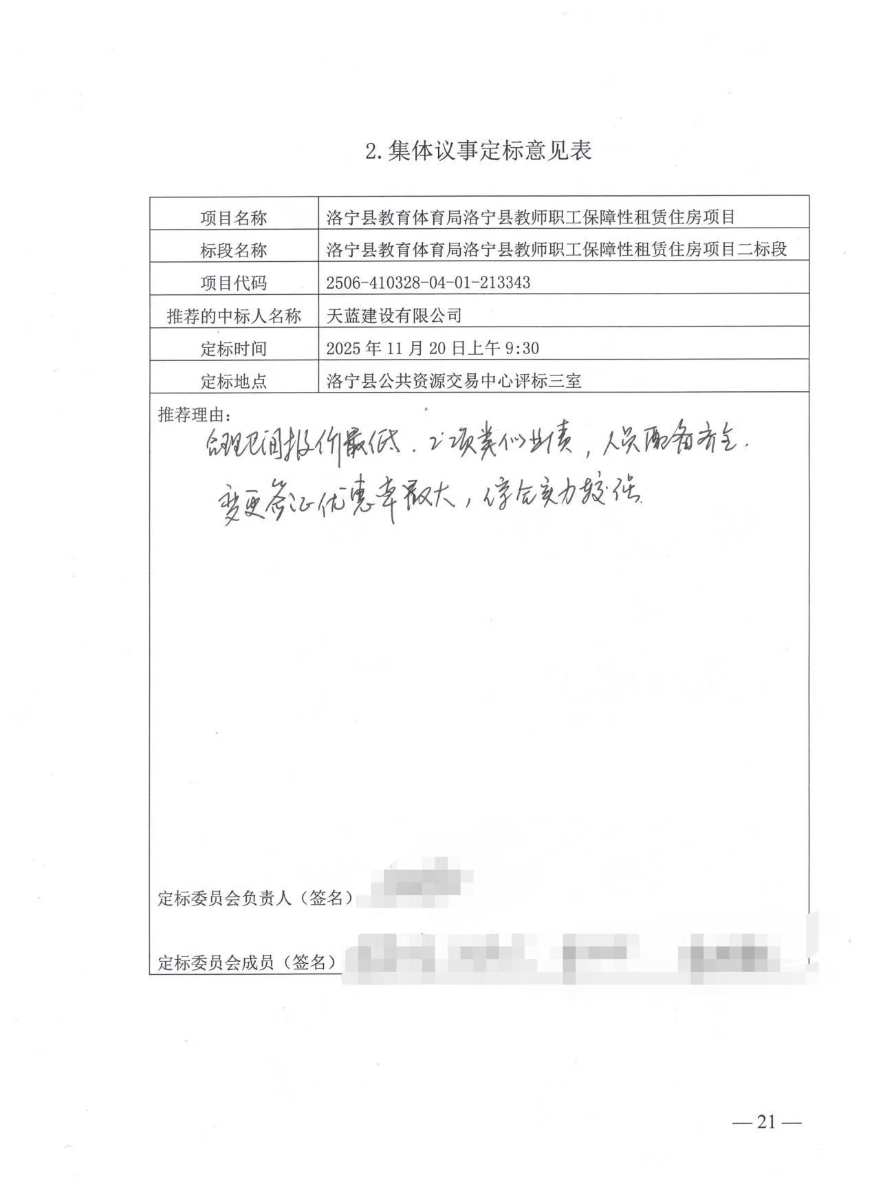 中标单位名称:天蓝建设有限公司