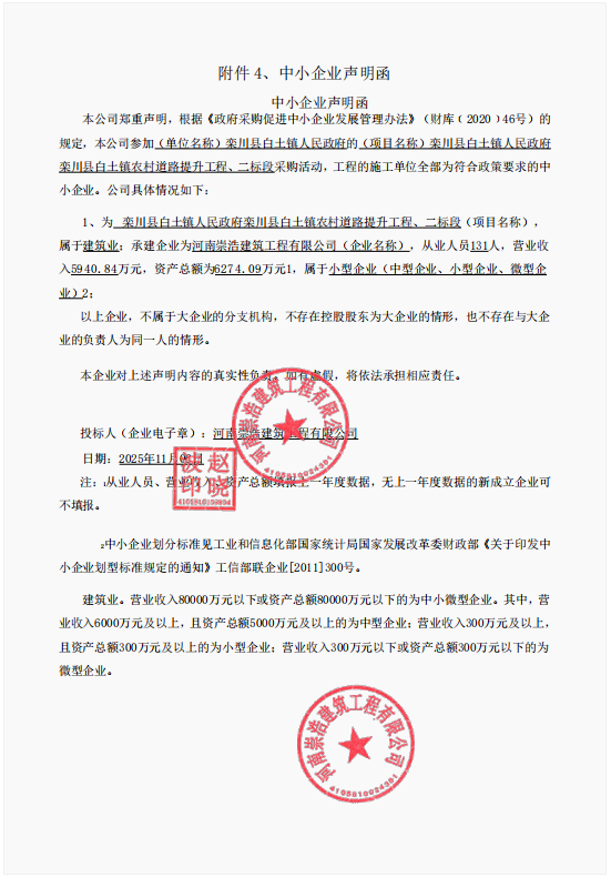 栾川县白土镇人民政府栾川县白土镇农村道路提升工程 二标段中标结果公告