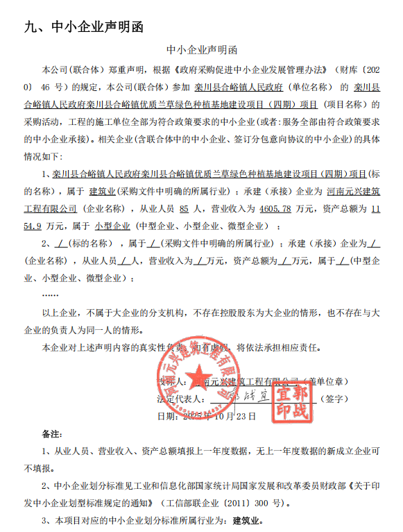 栾川县合峪镇人民政府栾川县合峪镇优质兰草绿色种植基地建设项目(四期)项目*中标公告