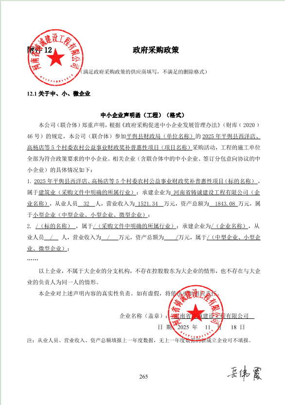 平舆县财政局2025年平舆县西洋店、高杨店等5个村委农村公益事业财政奖补普惠性项目-成交公告