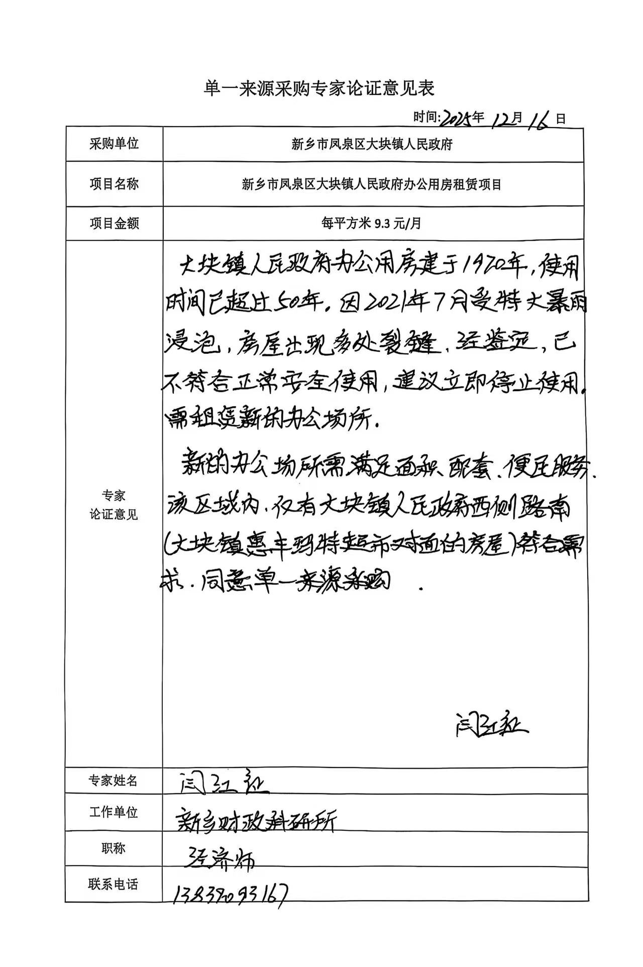 新乡市凤泉区大块镇人民政府办公用房租赁项目论证公示