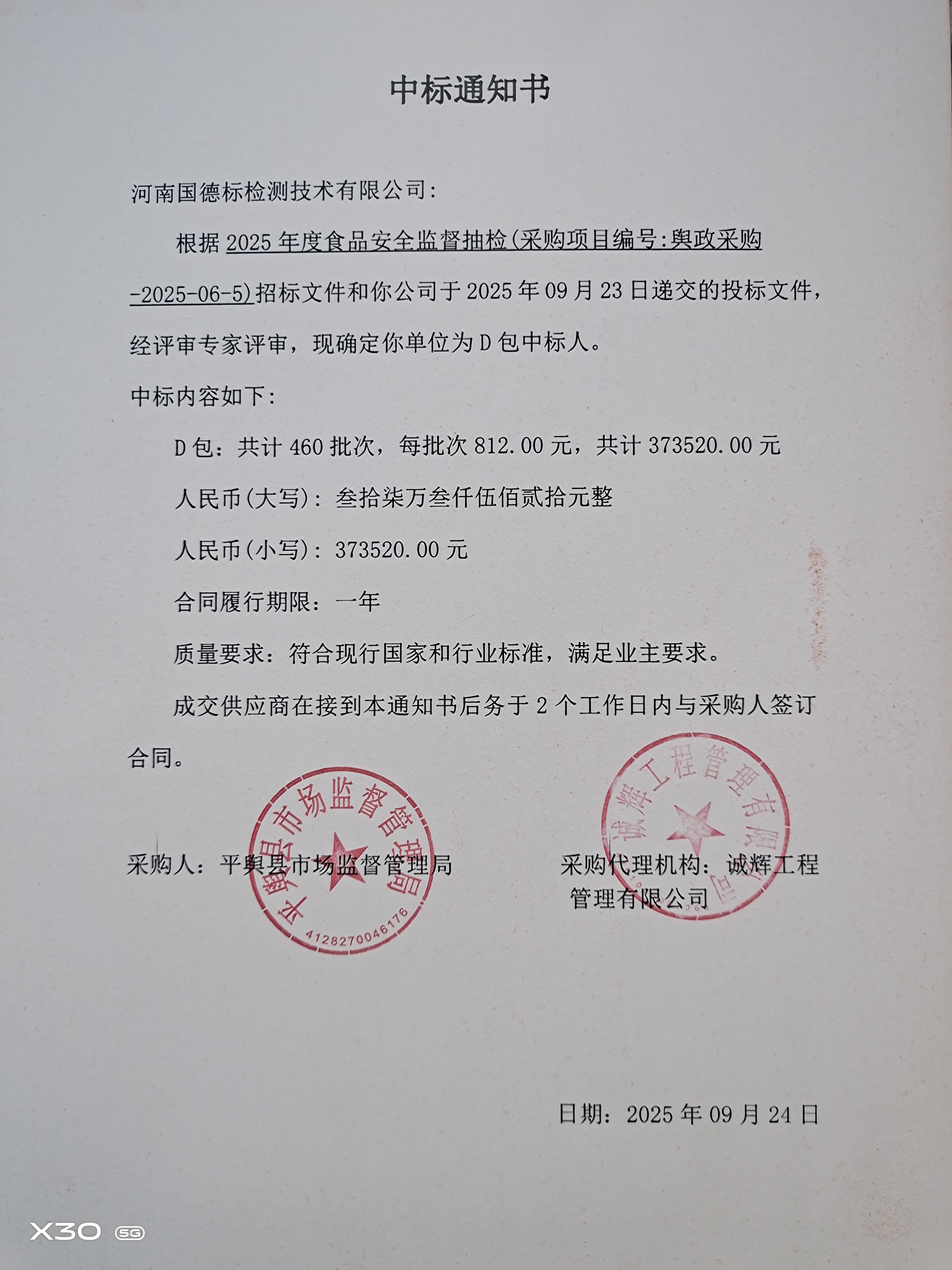河南/驻马店 中标结果
