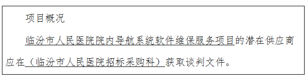 临汾市人民医院院内导航系统软件维保服务项目竞争性谈判公告