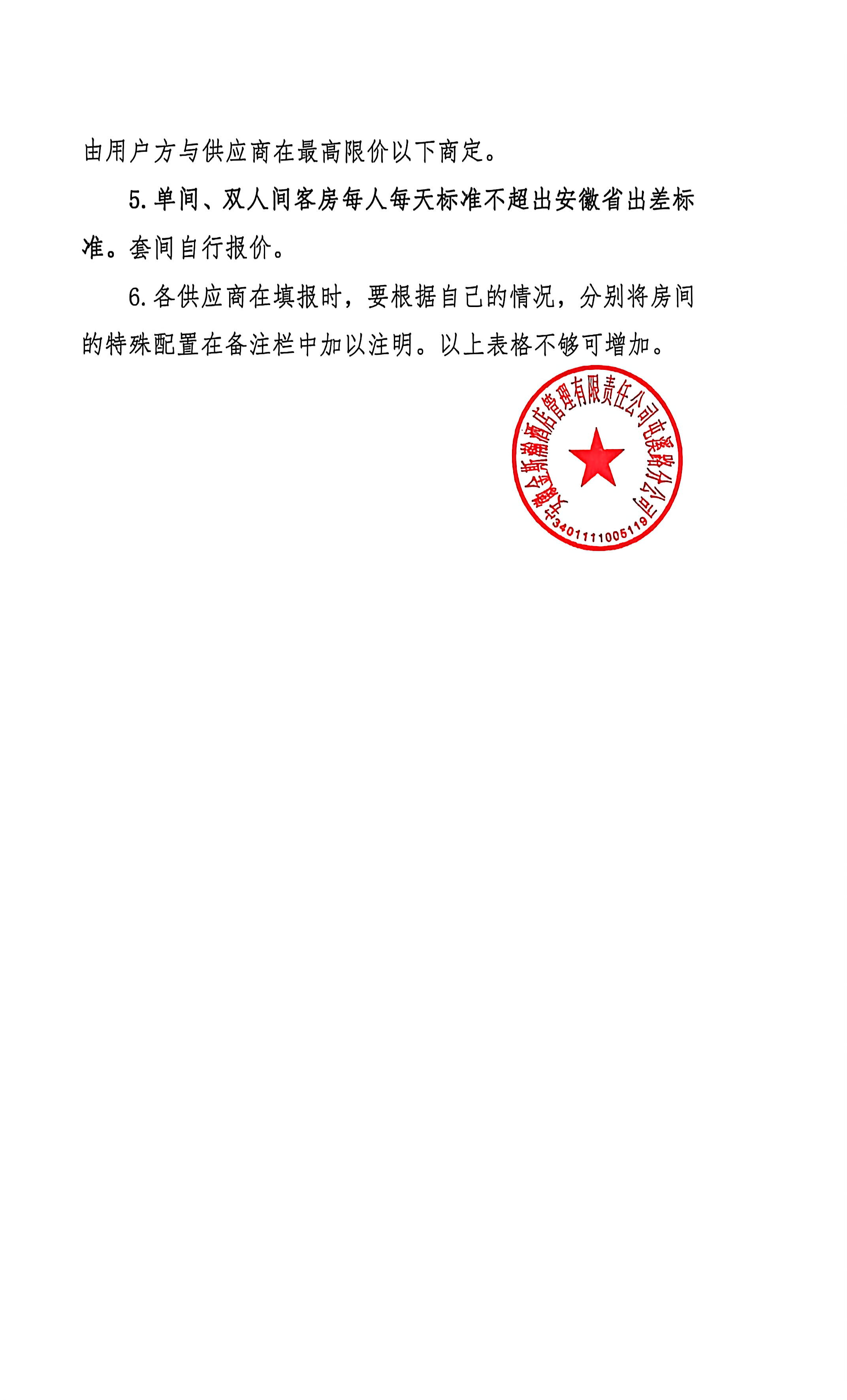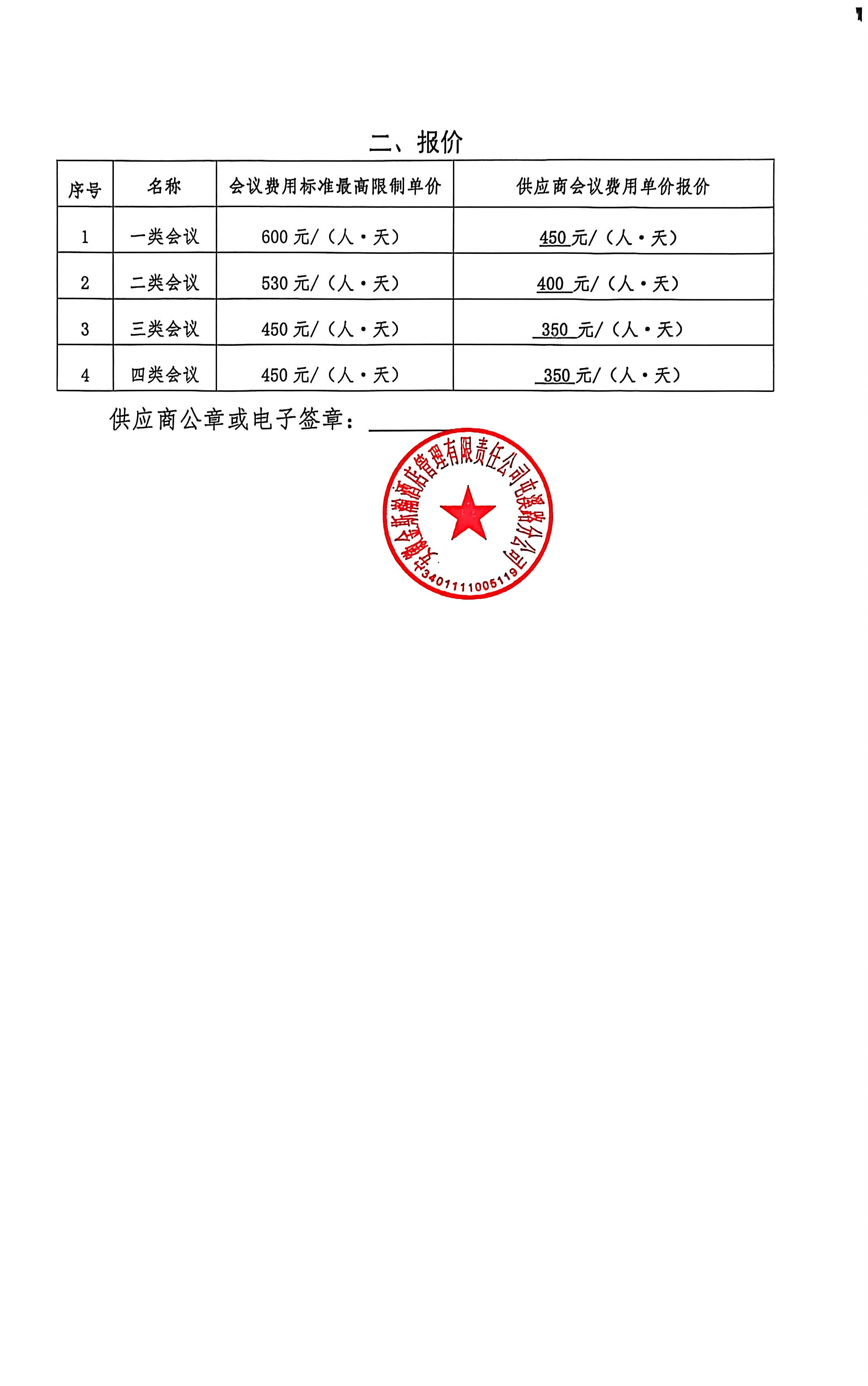 安徽金斯瀚酒店管理有限责任公司屯溪路分公司*********年安徽省党政机关会议场所保障服务