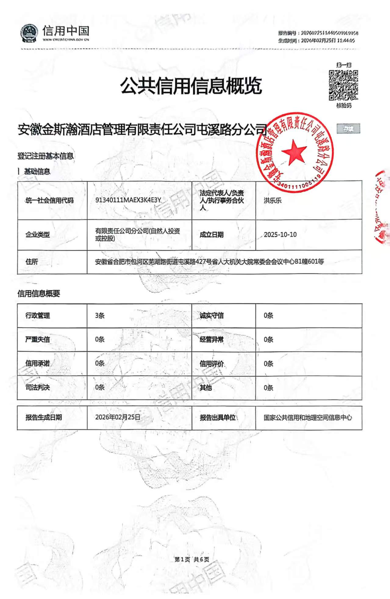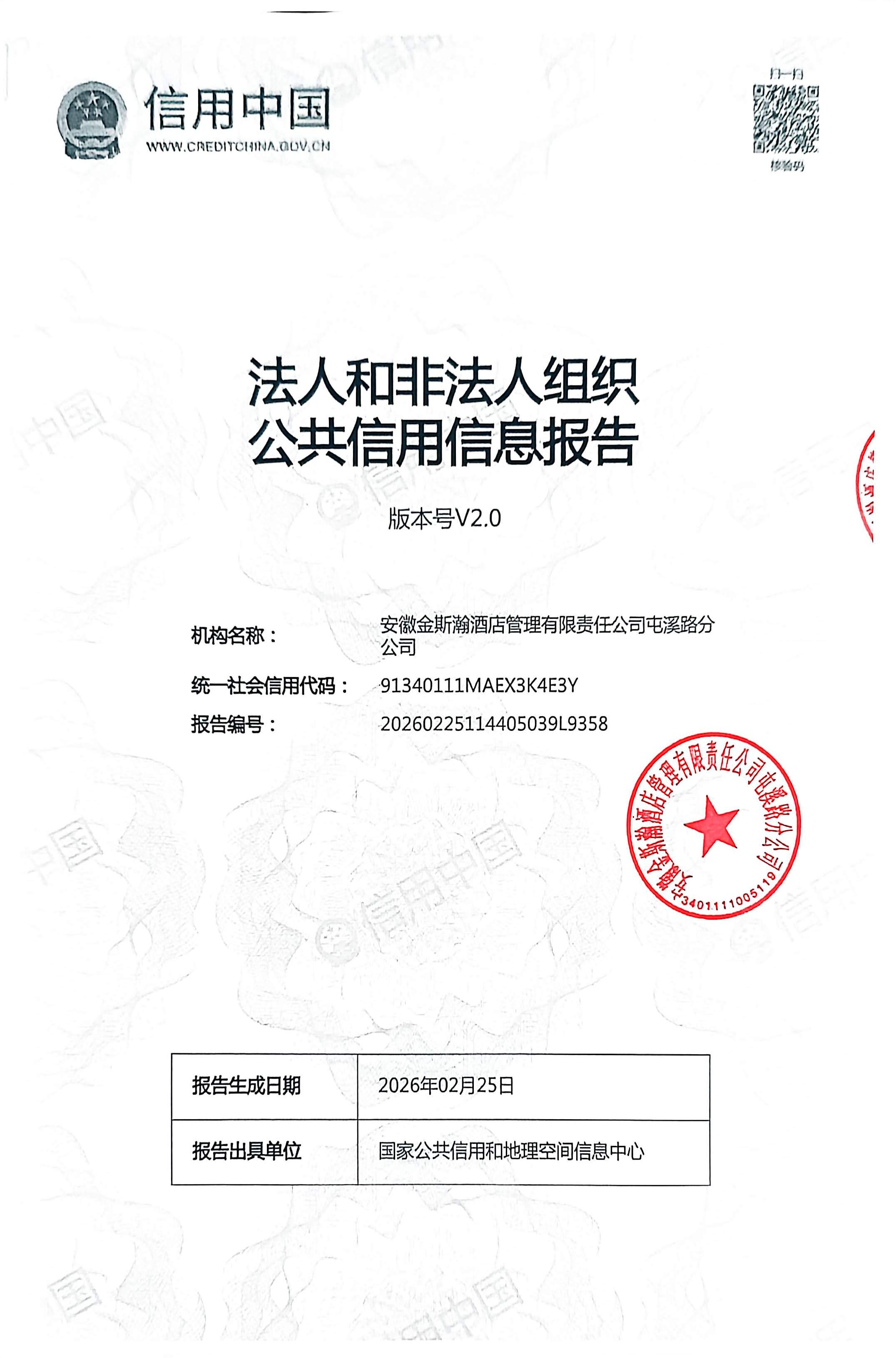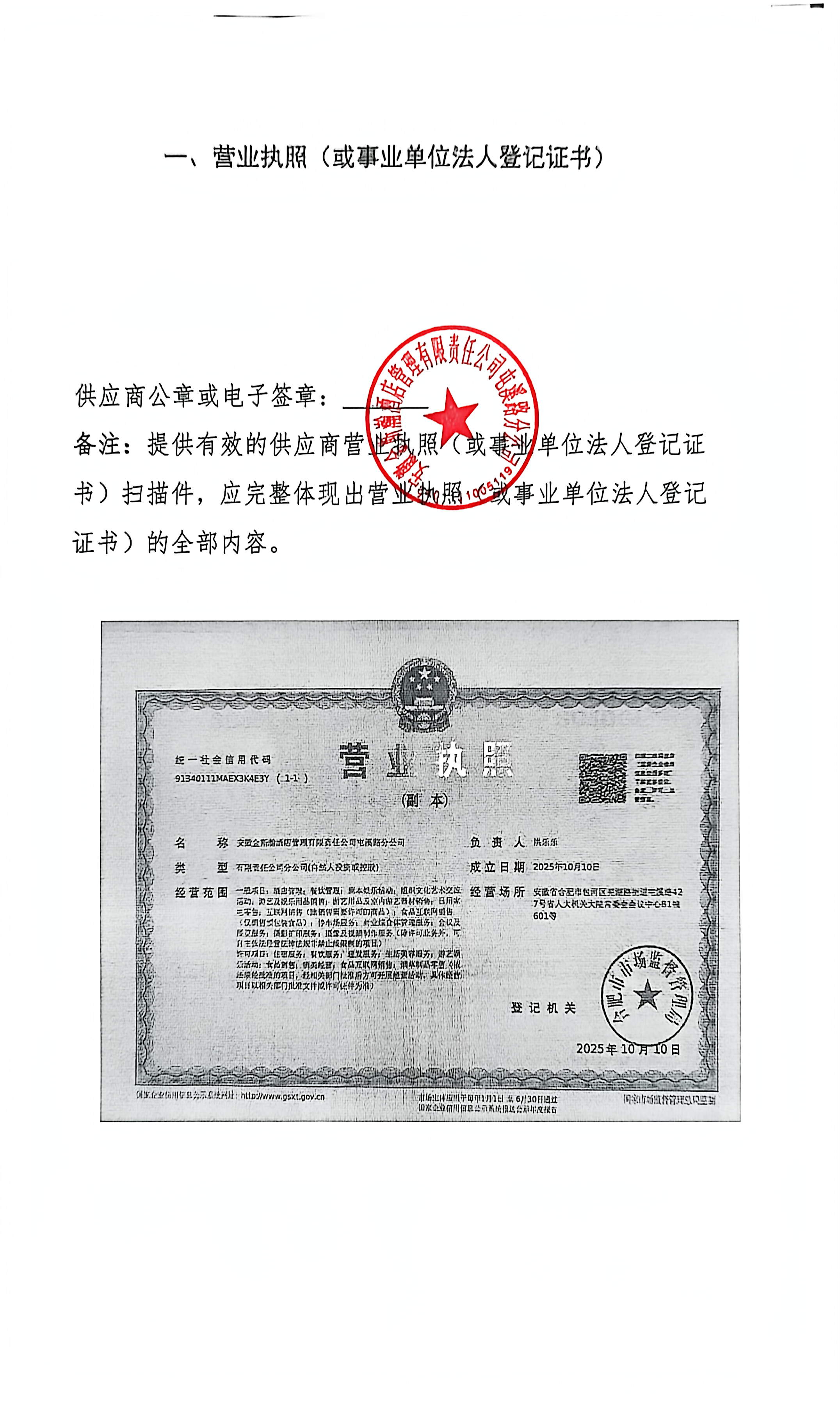 供应商名称:安徽金斯瀚酒店管理有限责任公司屯溪路分公司