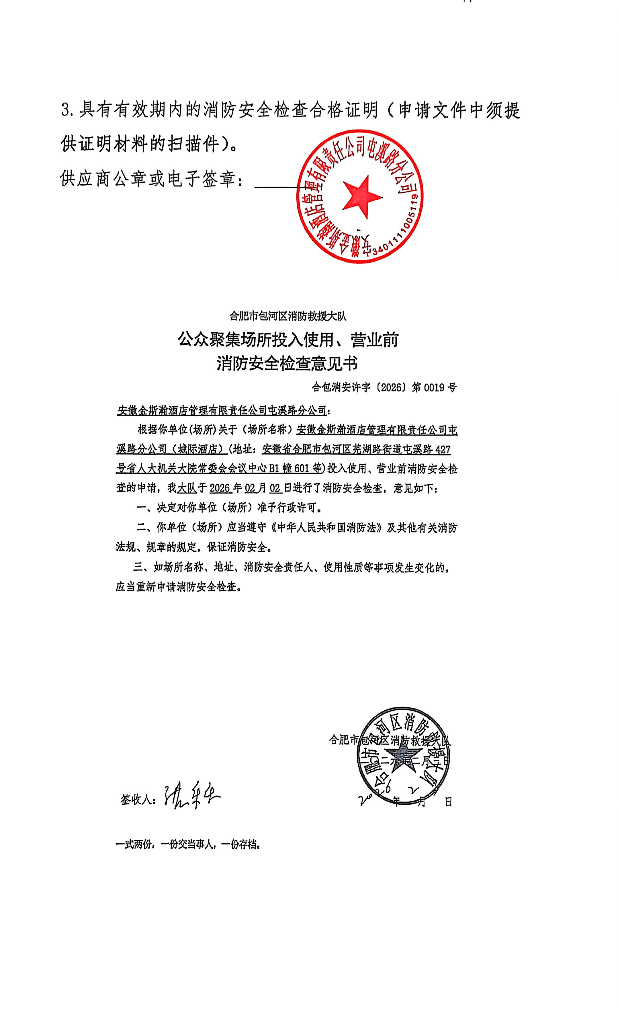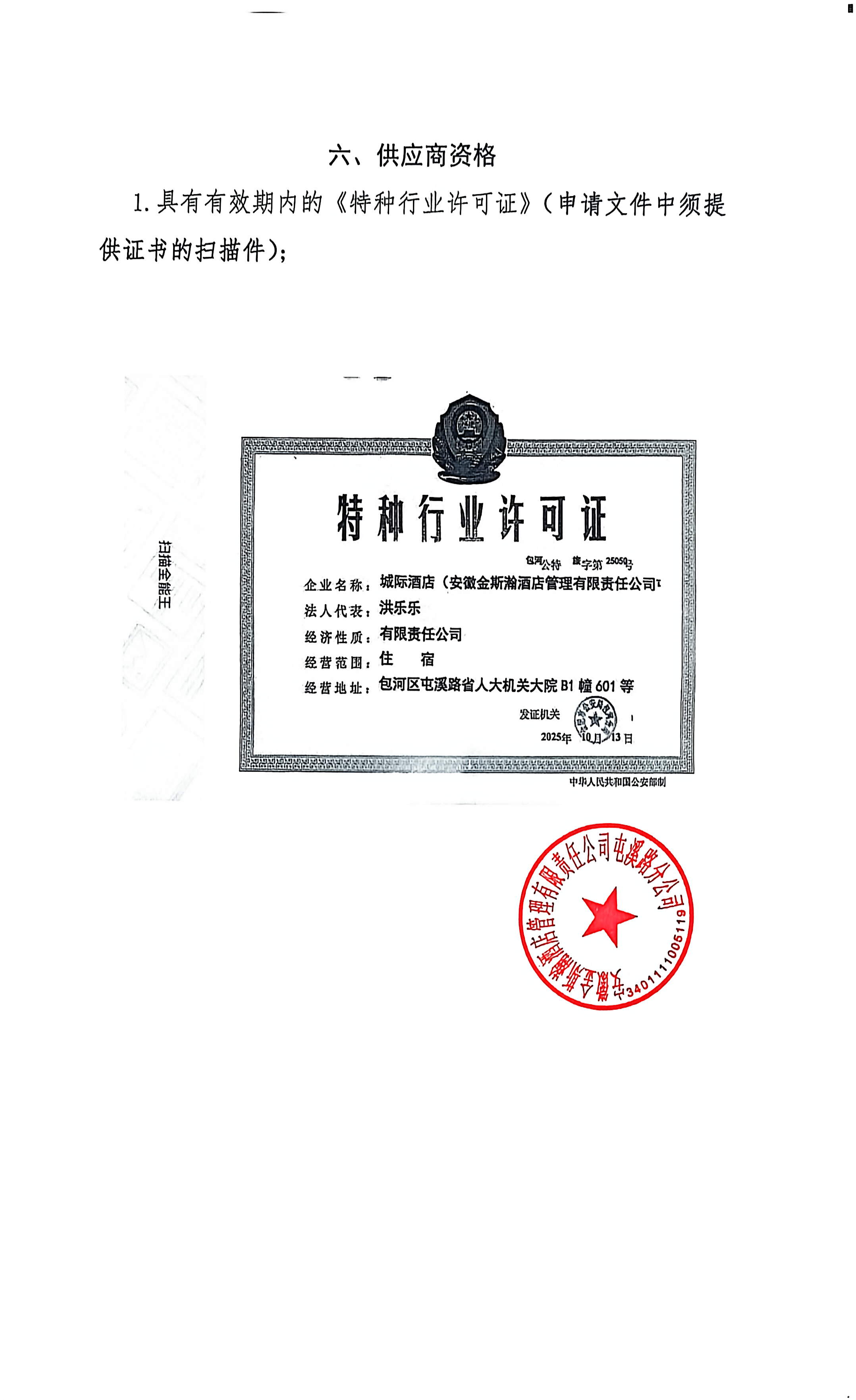 安徽金斯瀚酒店管理有限责任公司屯溪路分公司入围2025-2026年安徽省党政机关会议场所保障服务开放式框架协议采购方案的结果公告