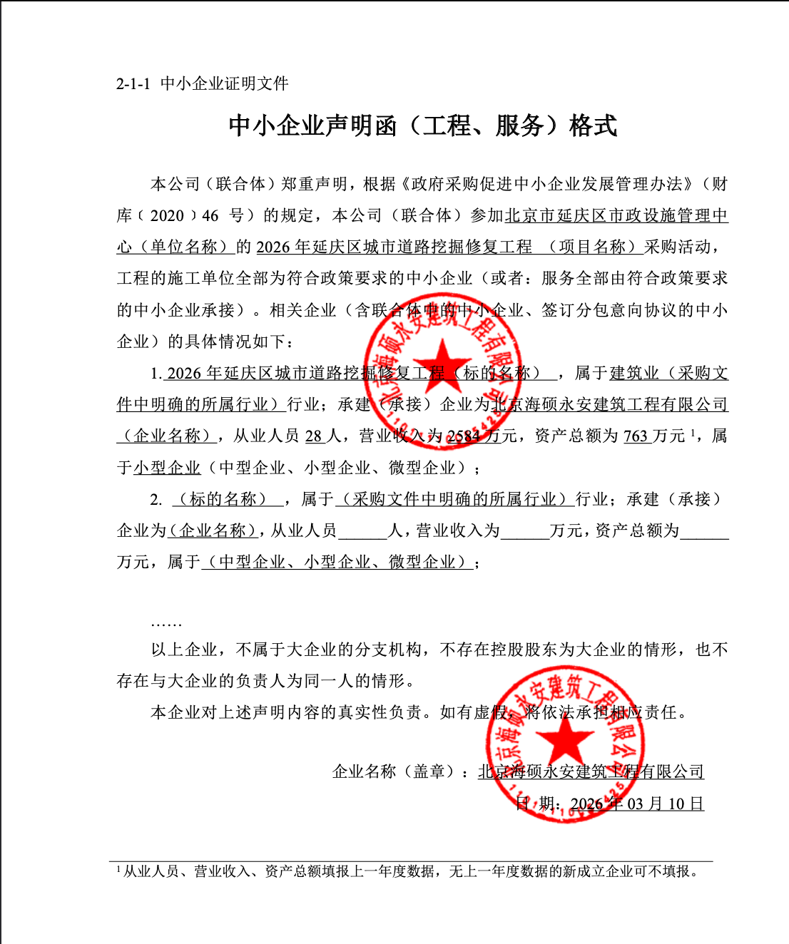 中标成交供应商名称:北京海硕永安建筑工程有限公司