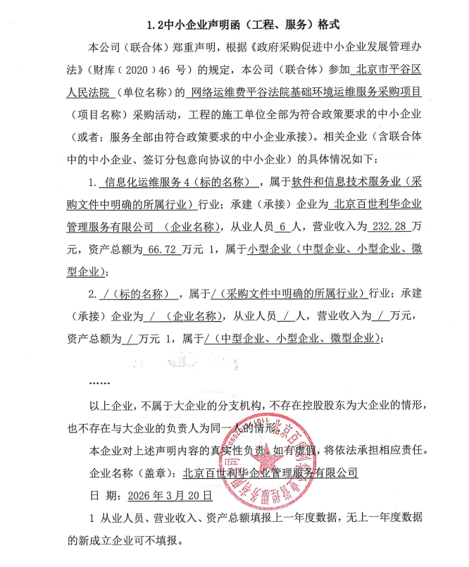 中标成交供应商名称:北京百世利华企业管理服务有限公司