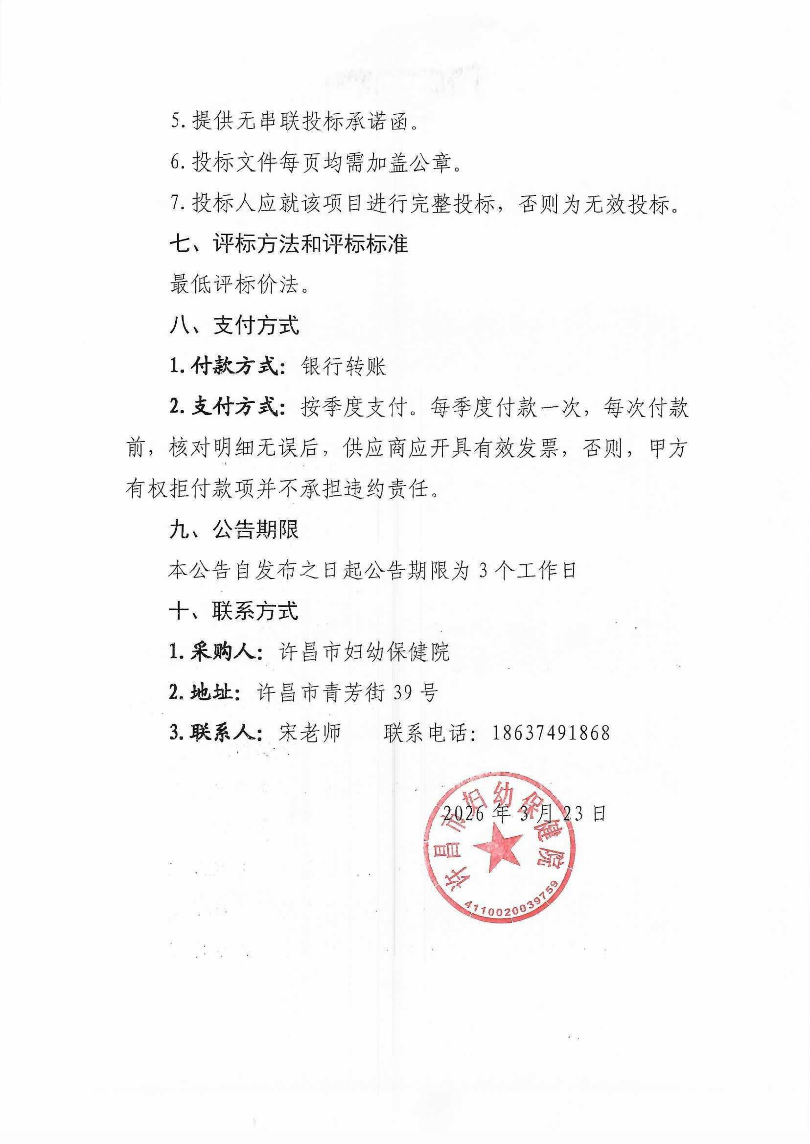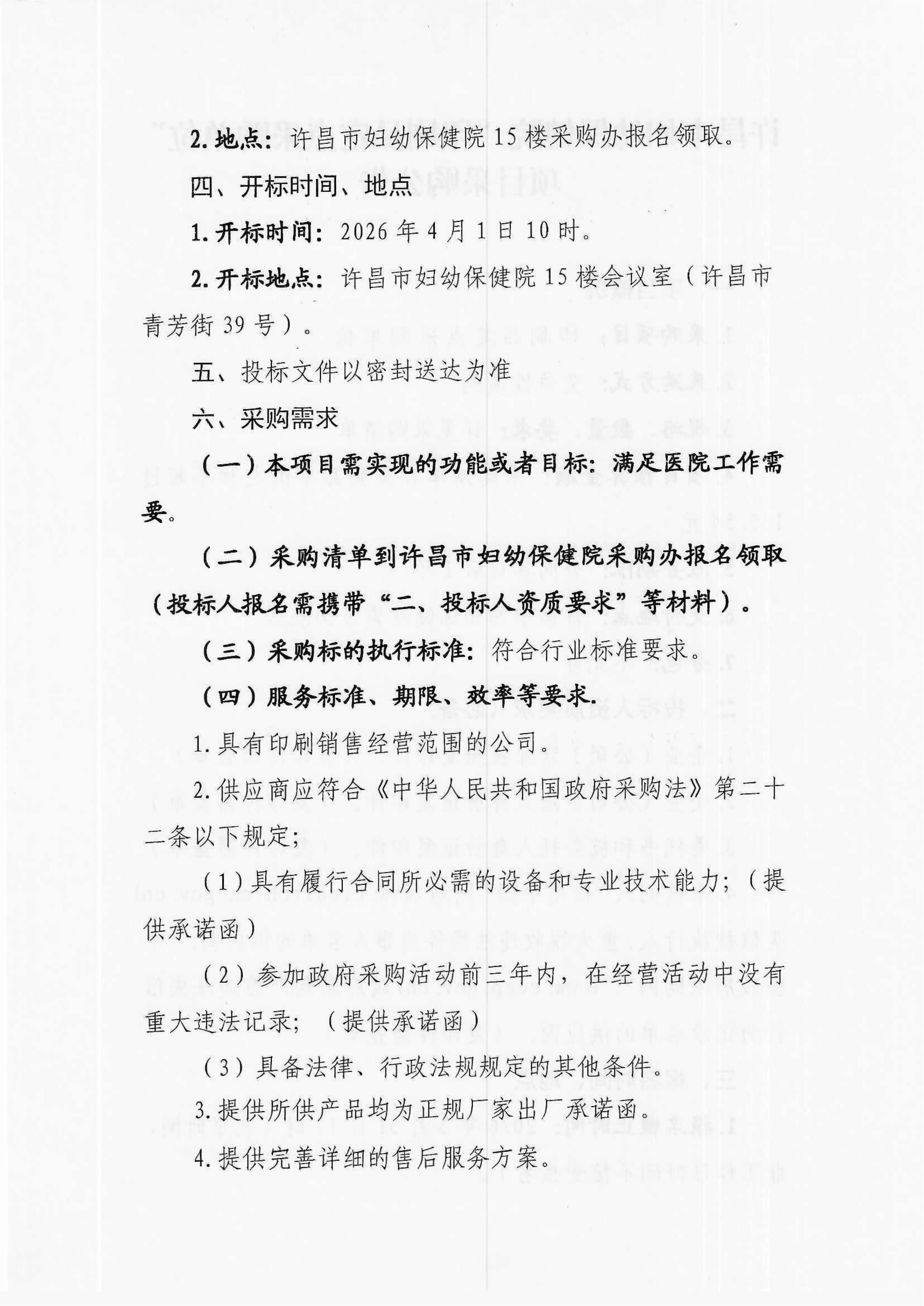 许昌市妇幼保健院“印刷品定点采购单位”项目采购公告