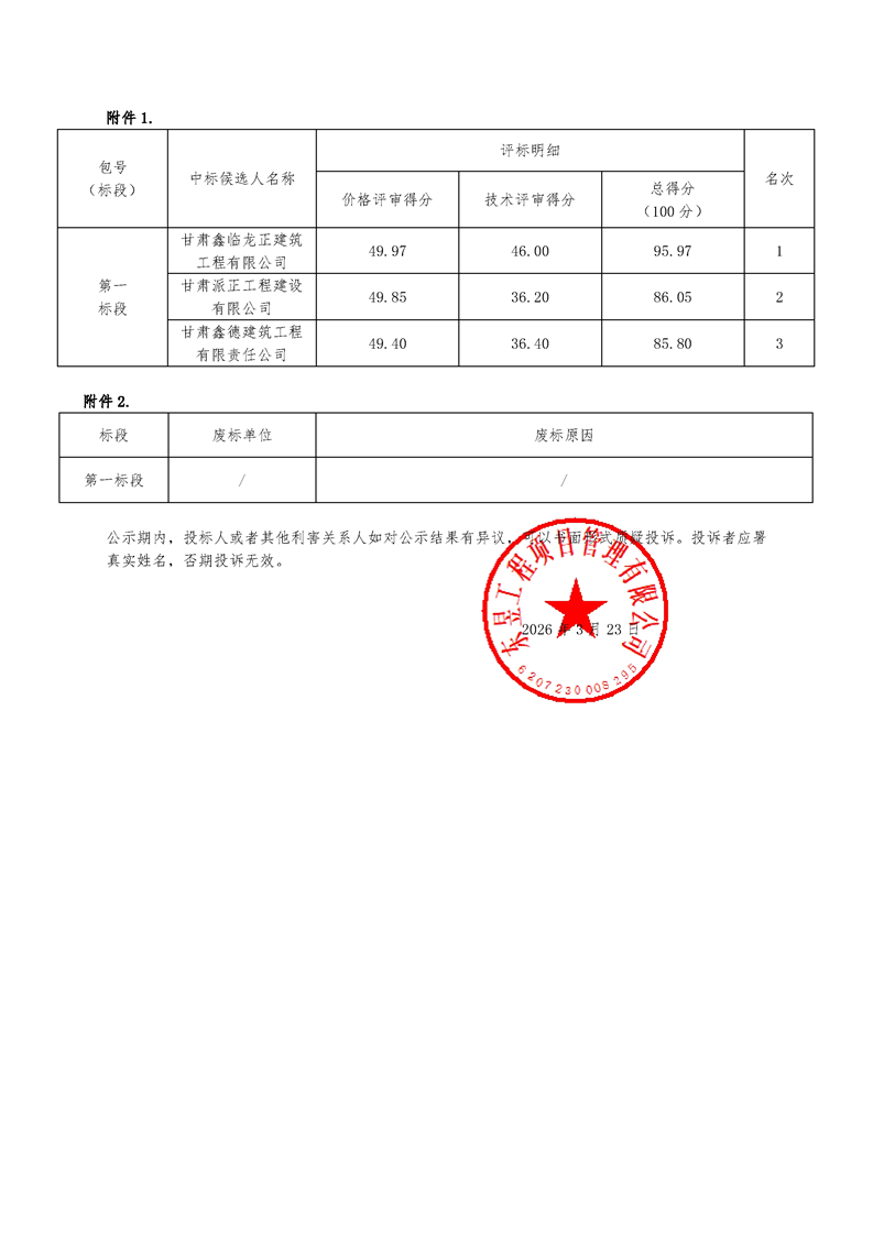 甘肃/张掖 中标结果