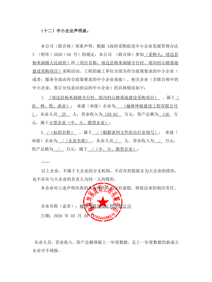 | * | 靖边县杨米涧镇寺台村、瑶沟村山楂基地建设采购项目 | * | 无 |