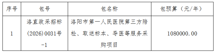 *.* 采购内容:本项目为洛阳市第一人民医院第三方陪检、取送标本、导医等服务采购。