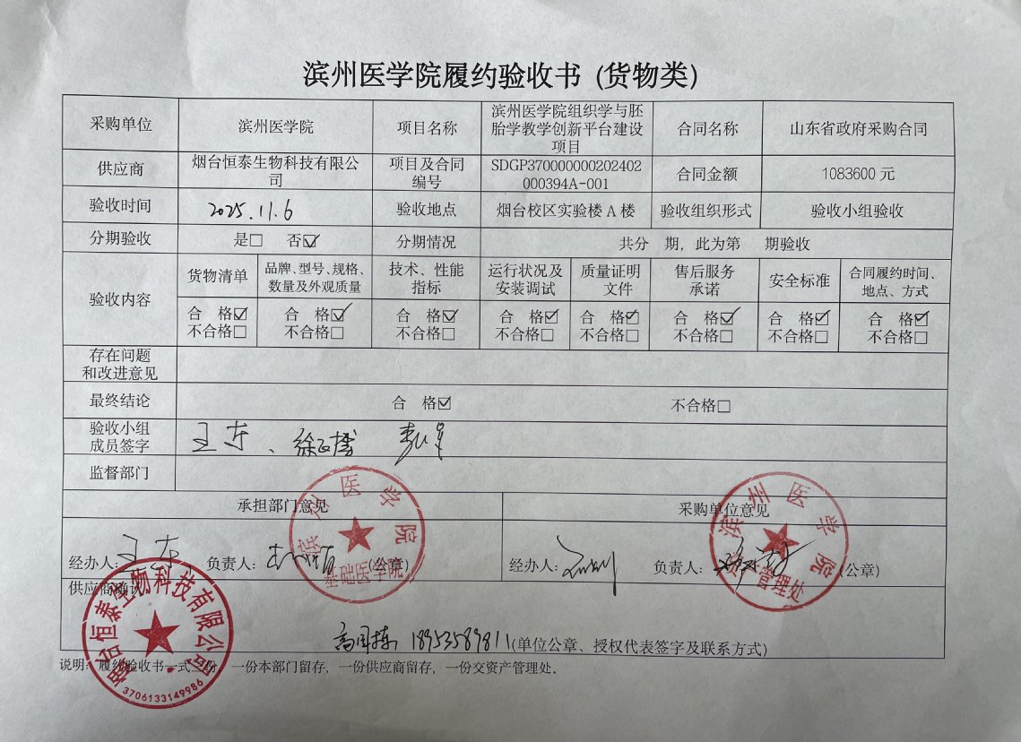 滨州医学院组织学与胚胎学教学创新平台建设项目