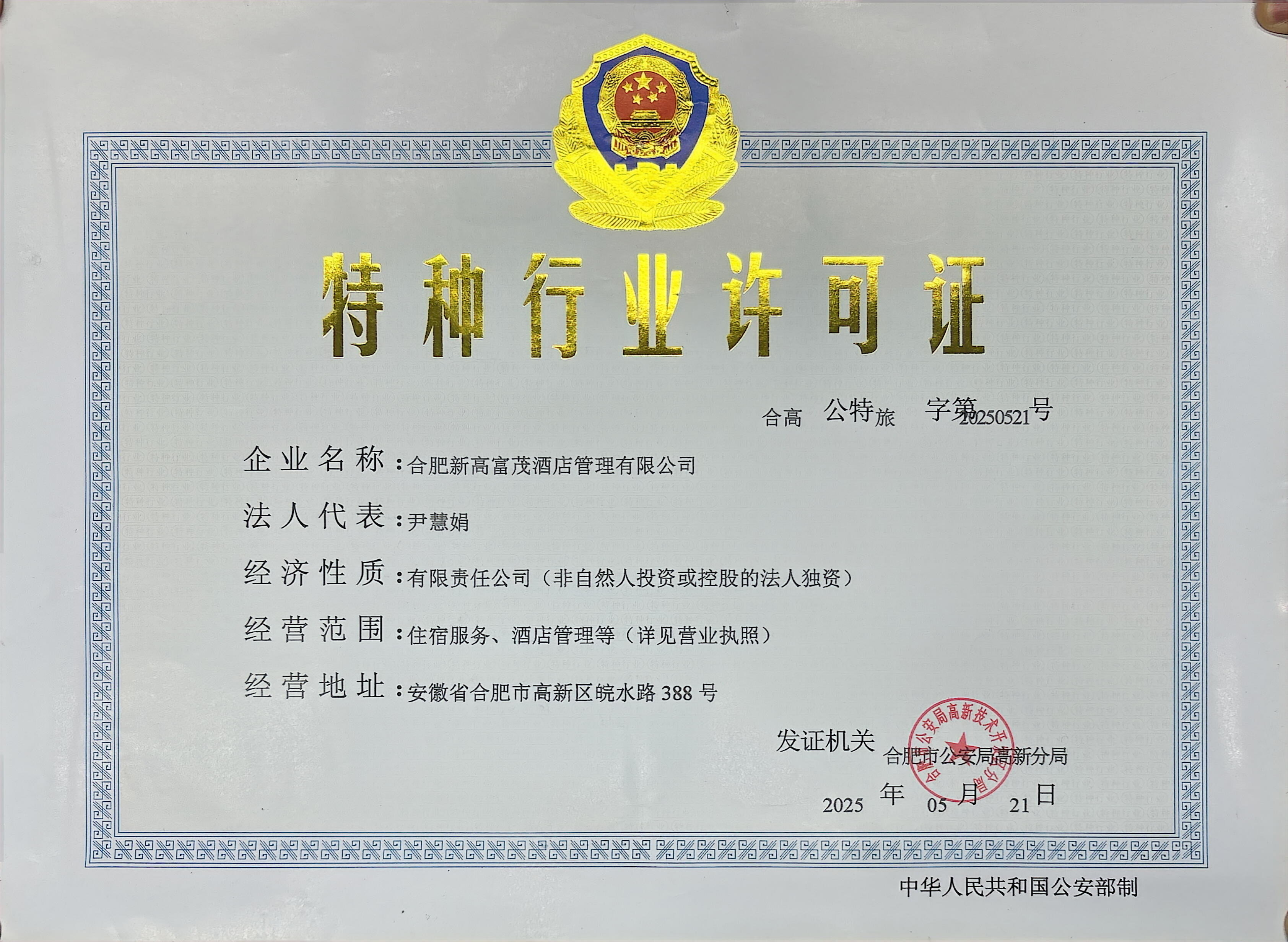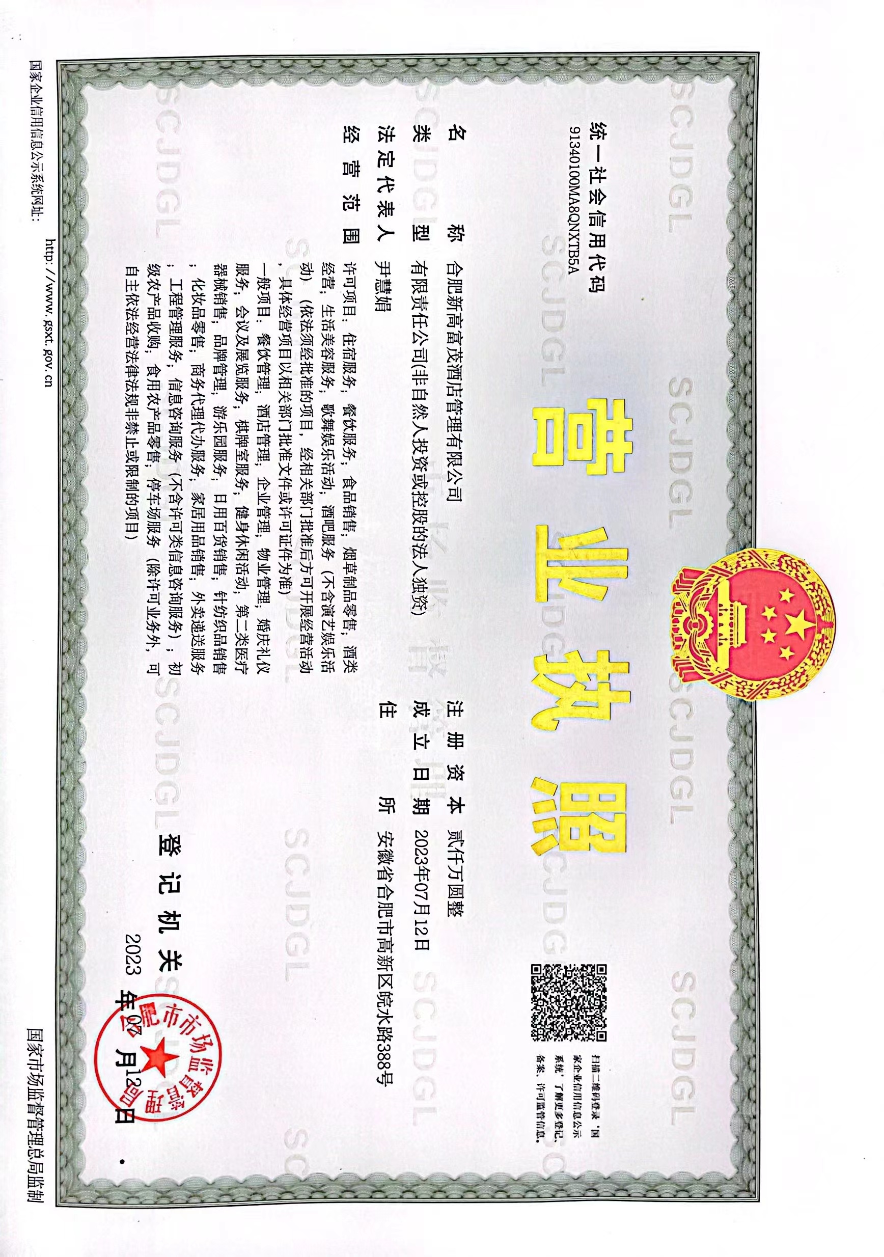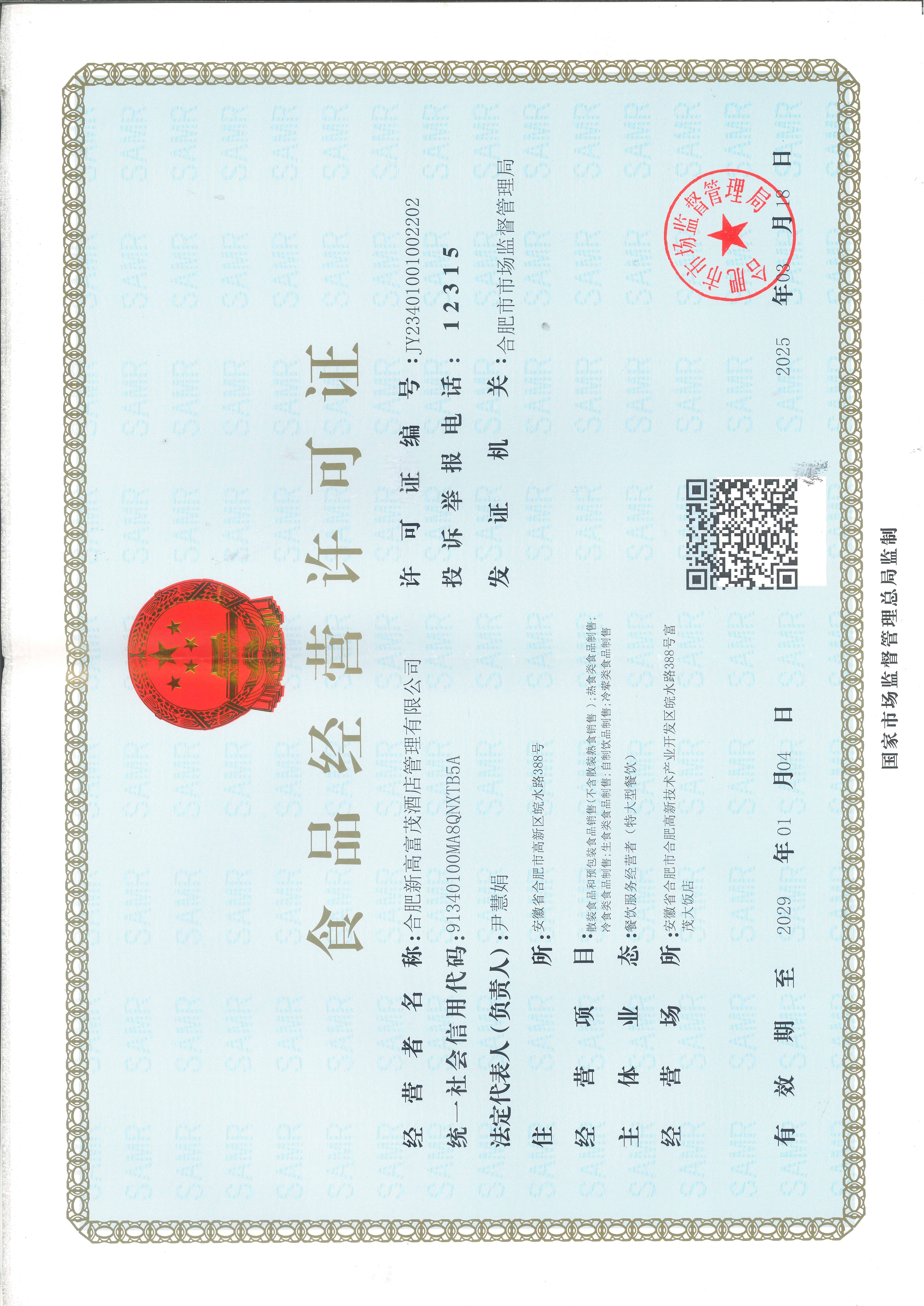 供应商名称:合肥新高富茂酒店管理有限公司