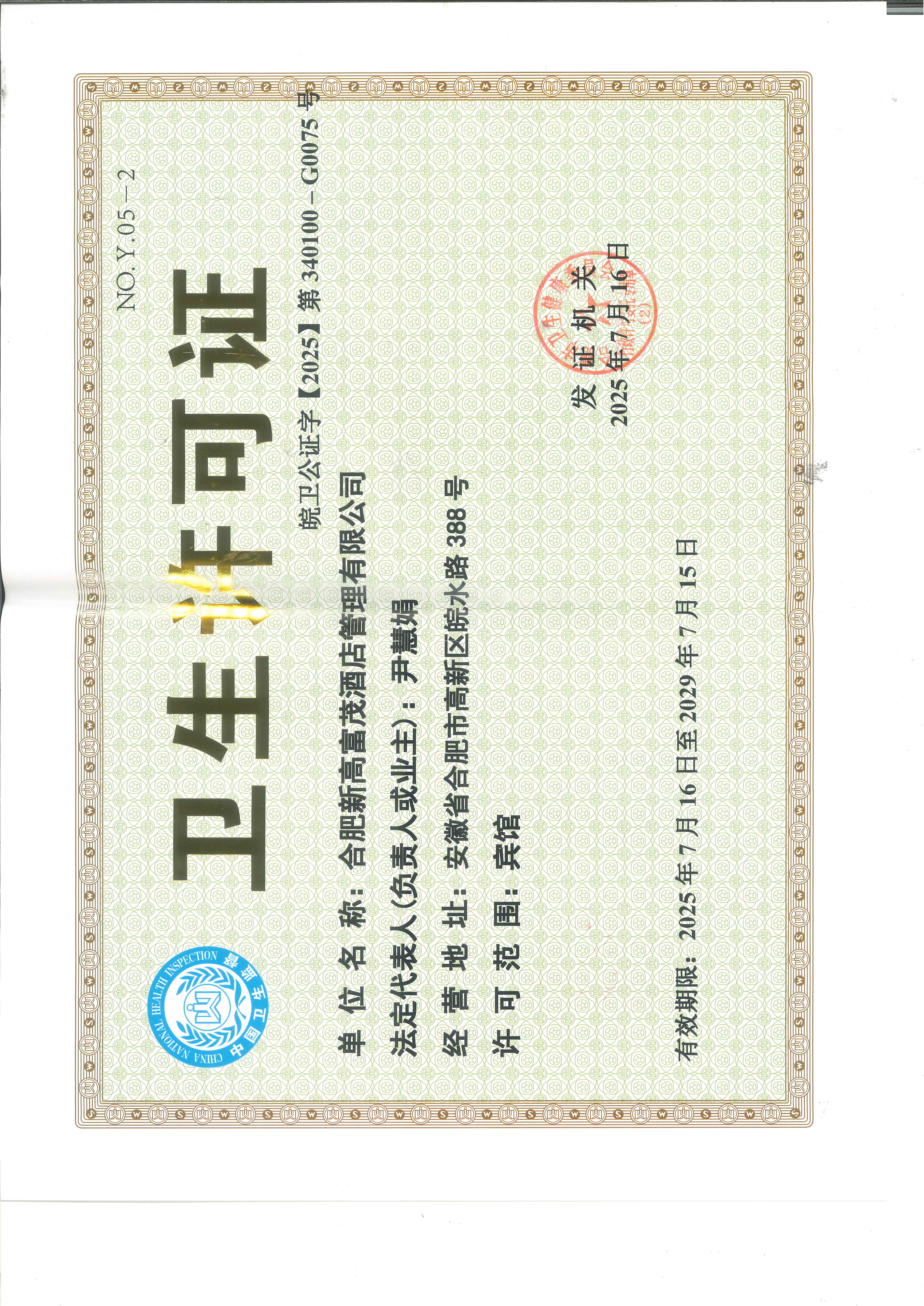 有效期内的《公共场所卫生许可证》:卫生许可证.***