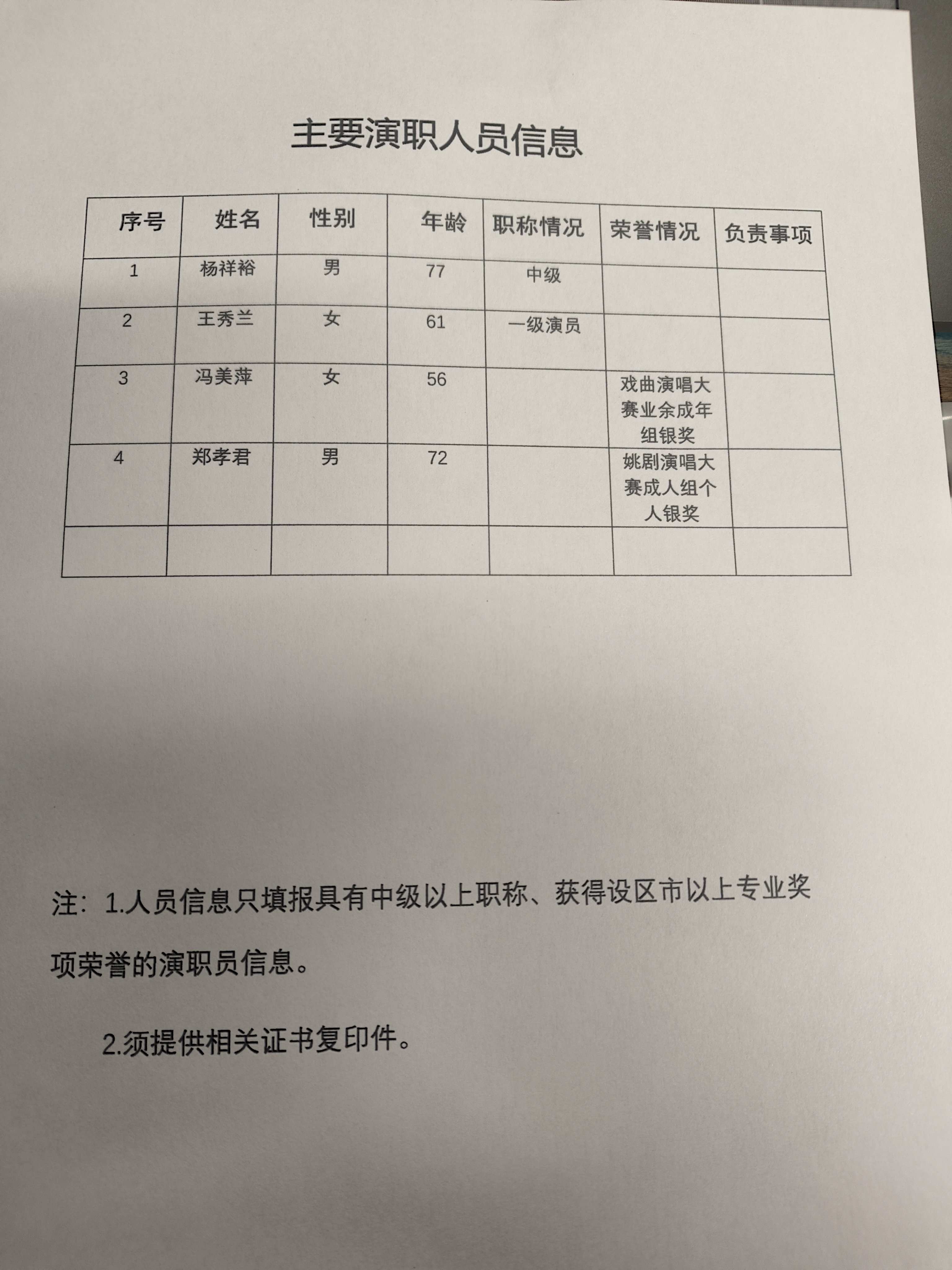 二级演职人员或获设区市级专业奖项荣誉演员:*
