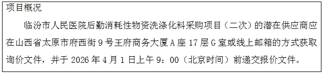 临汾市人民医院后勤消耗性物资洗涤化料采购项目(二次)询价公告