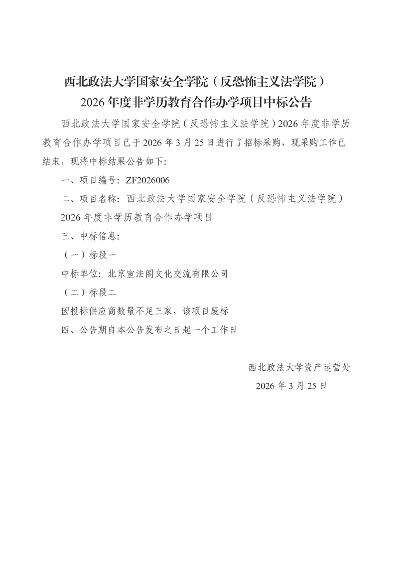 西北政法大学国家安全学院(反恐怖主义法学院)2026年度