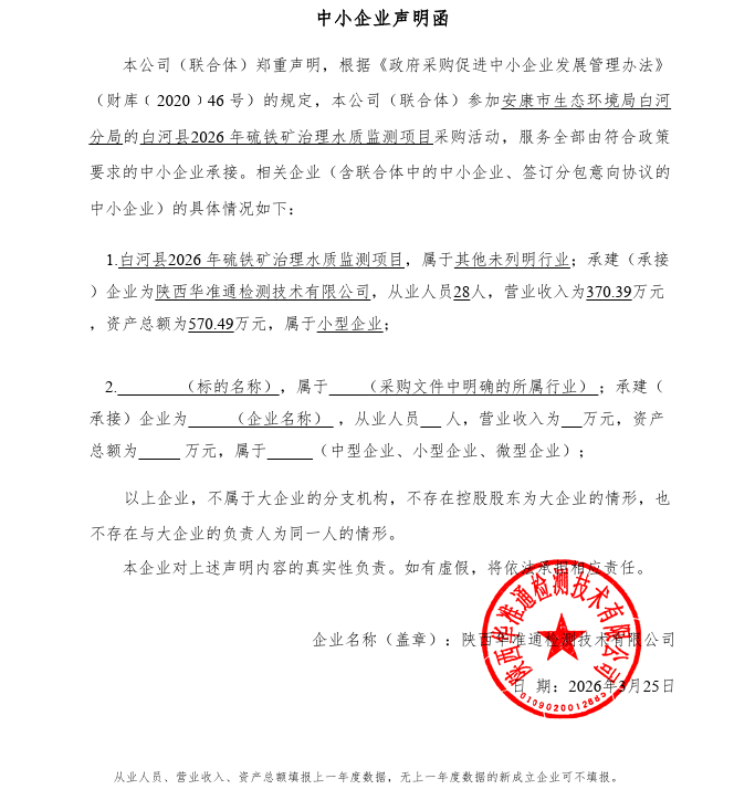 白河县2026年硫铁矿治理水质监测中标(成交)结果公告