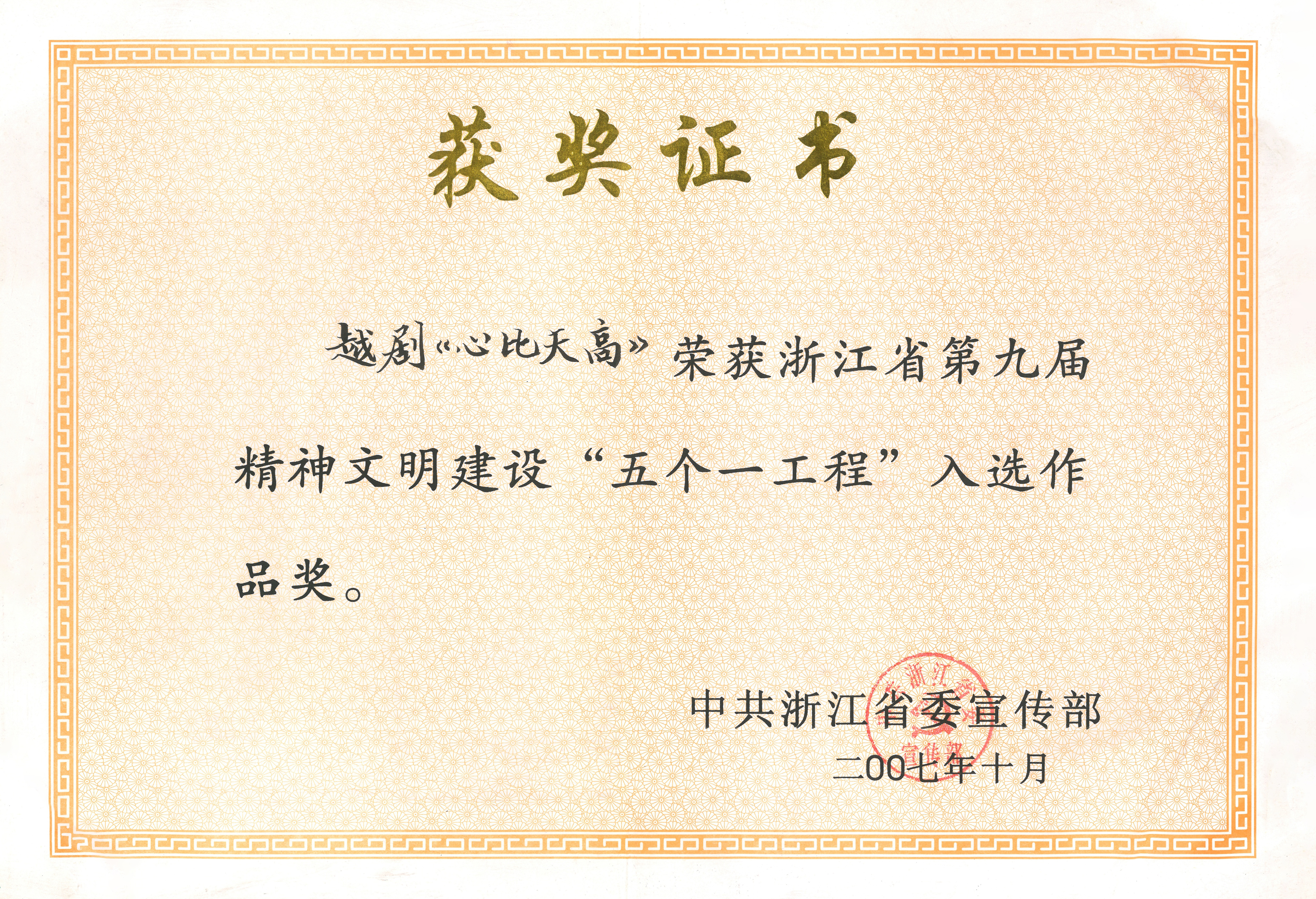 《心比天高》浙江省第九届精神文明建设“五个工程”入选作品奖.***