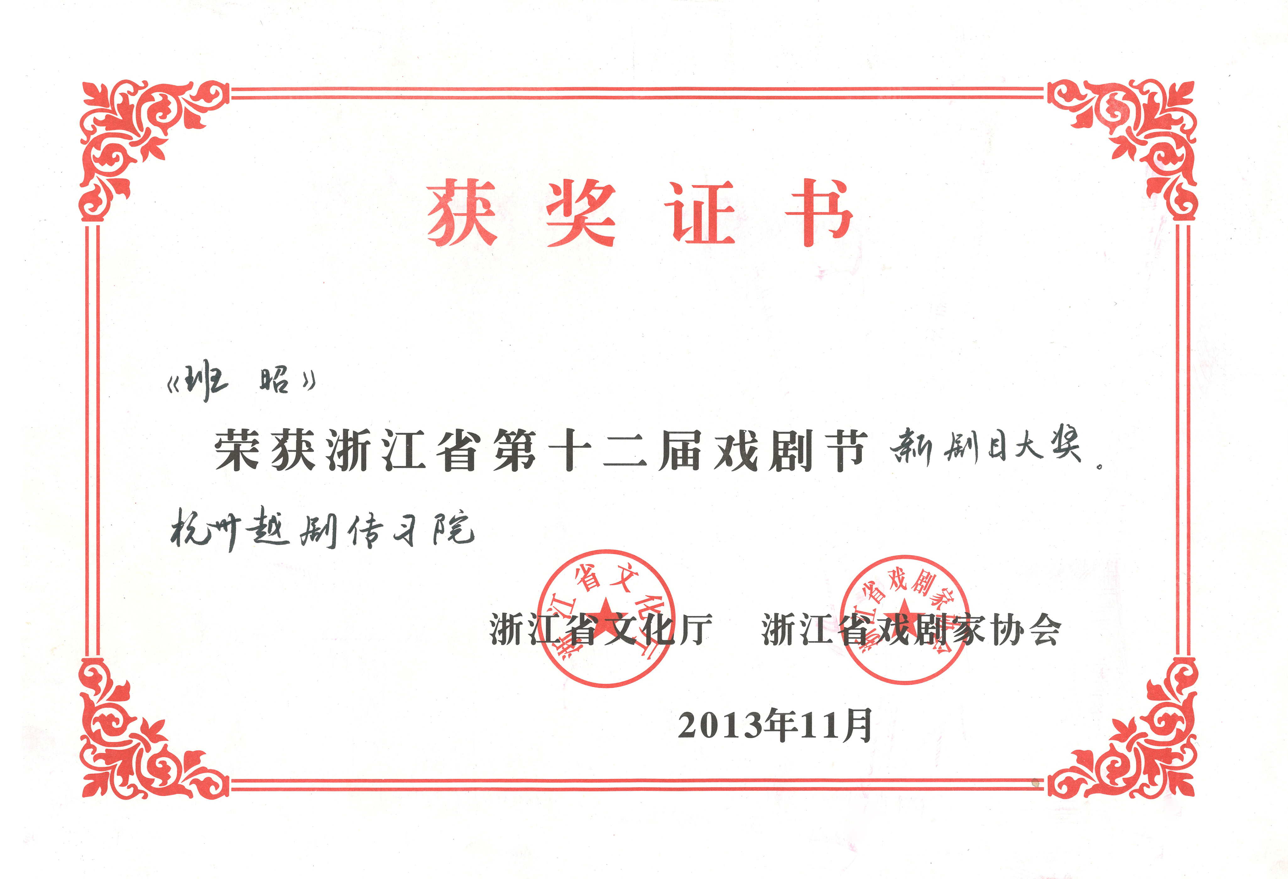 供应商认为需要的其他文件或说明:《班昭》浙江省第十二届戏剧节新剧目大奖.*** ******元