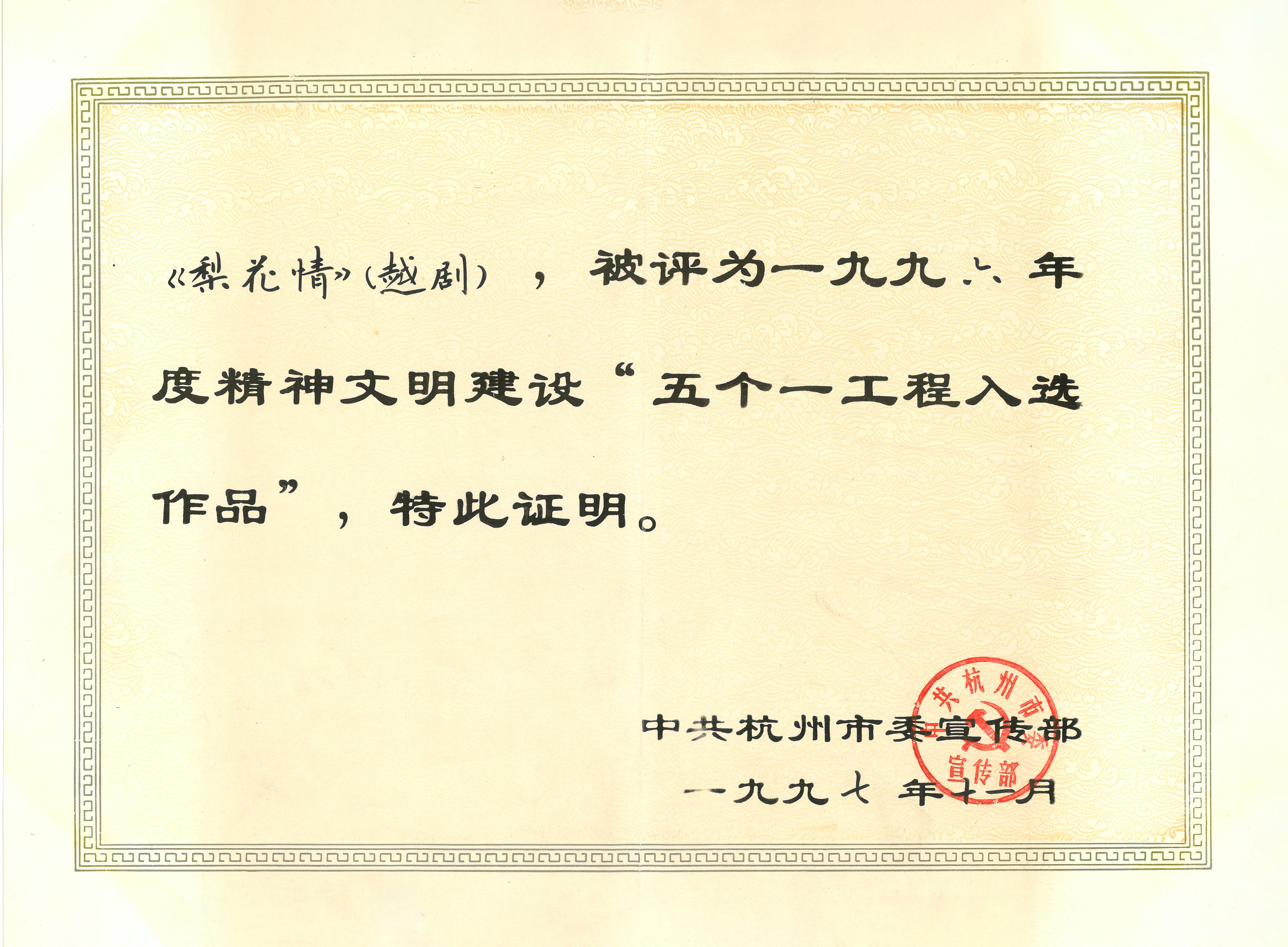 《梨花情》第二届浙江文化艺木节“优秀展演剧目”.*** ******元