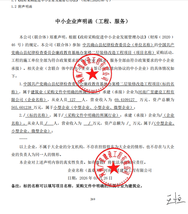 | *、采购项目名称:中国共产党确山县纪律检查委员会廉政教育基地办案楼二层装修改造工程项目 | |||||||||||||||||||||||||||||||