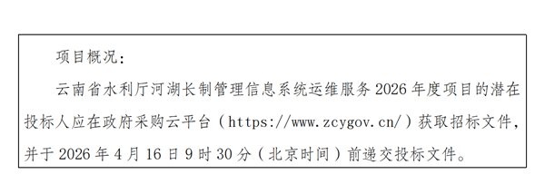 云南省水利厅河湖长制管理信息系统运维服务****年度项目招标公告