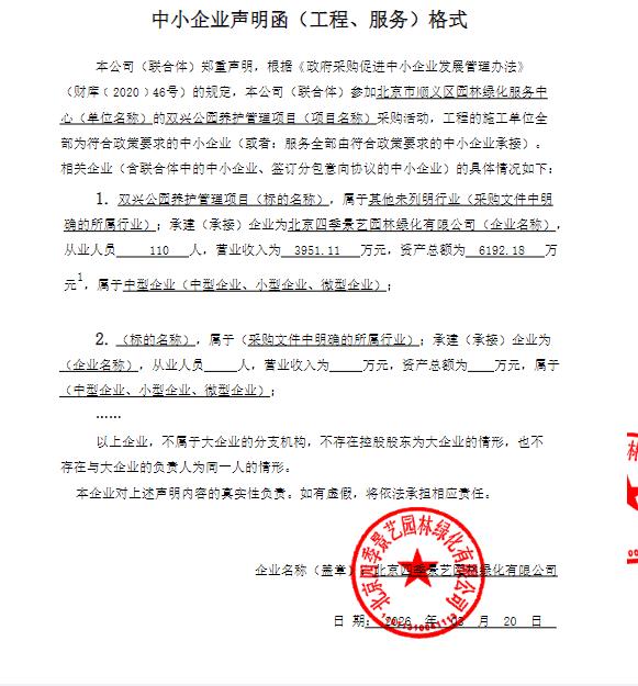 中标成交供应商名称:北京四季景艺园林绿化有限公司
