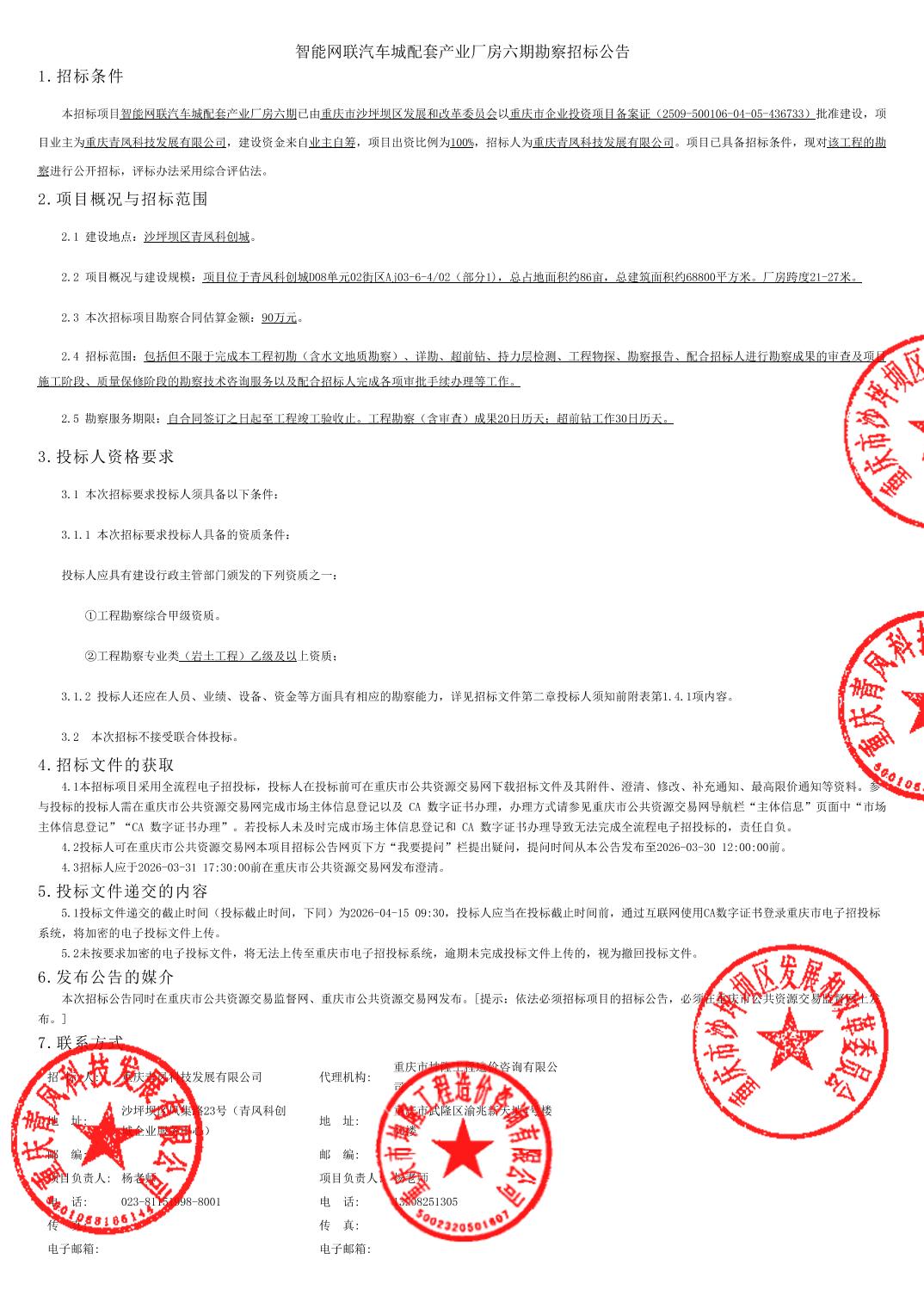 智能网联汽车城配套产业厂房六期勘察招标公告
