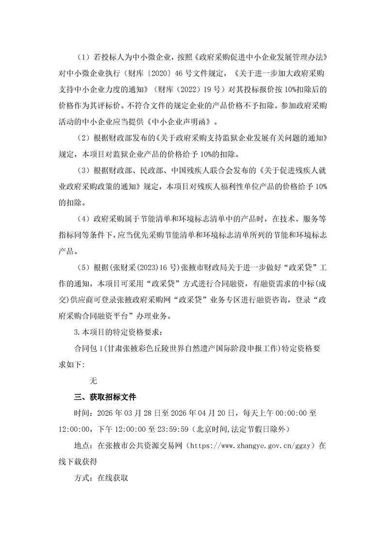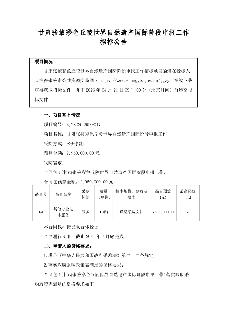 甘肃张掖彩色丘陵世界自然遗产国际阶段申报工作招标公告[采购/资审公告]