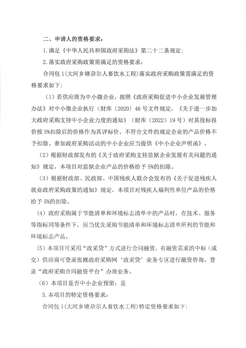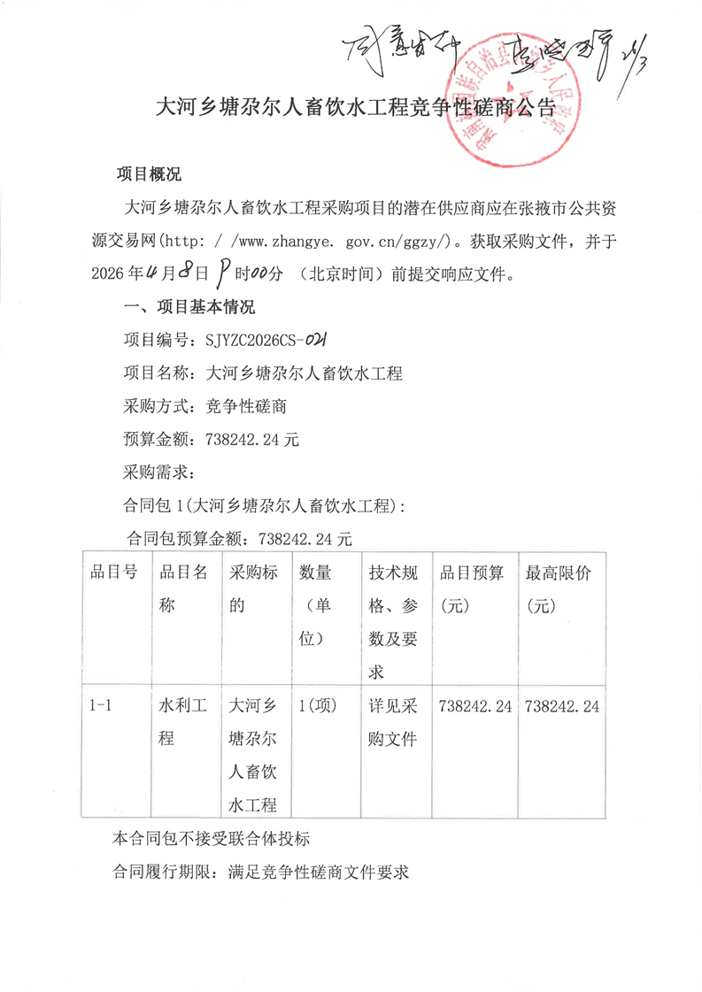 大河乡塘尕尔人畜饮水工程竞争性磋商公告[采购/资审公告]