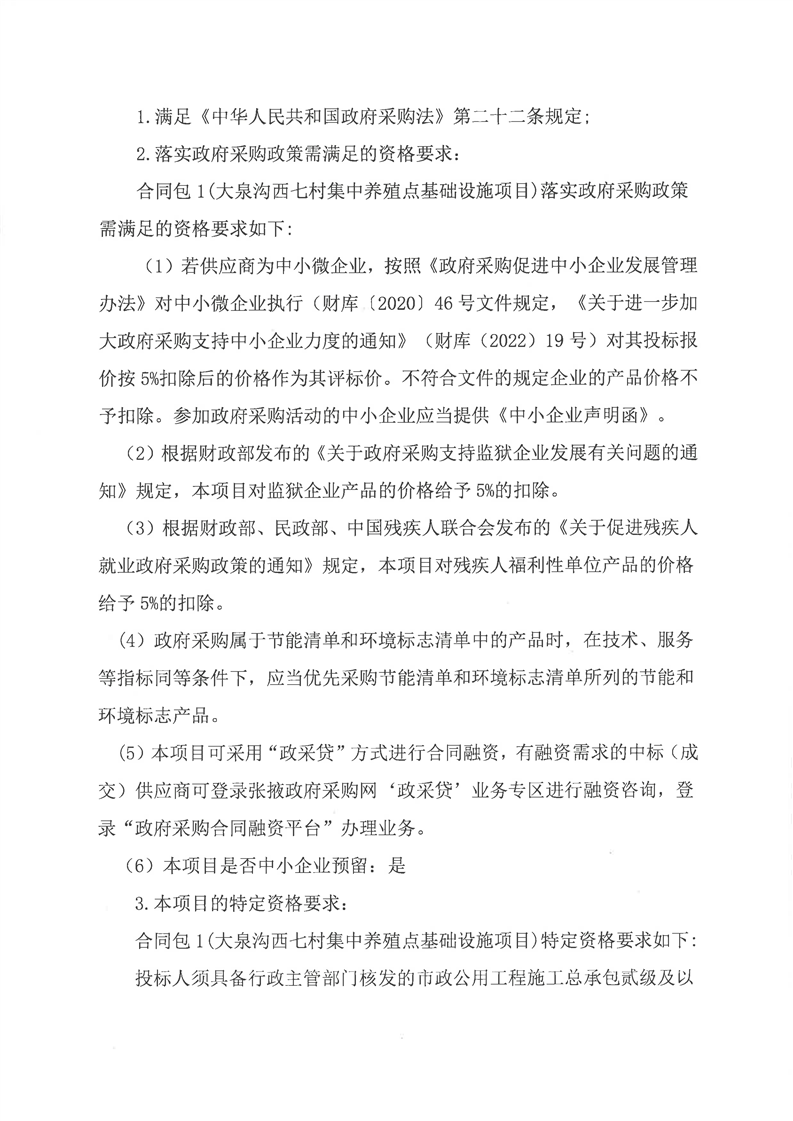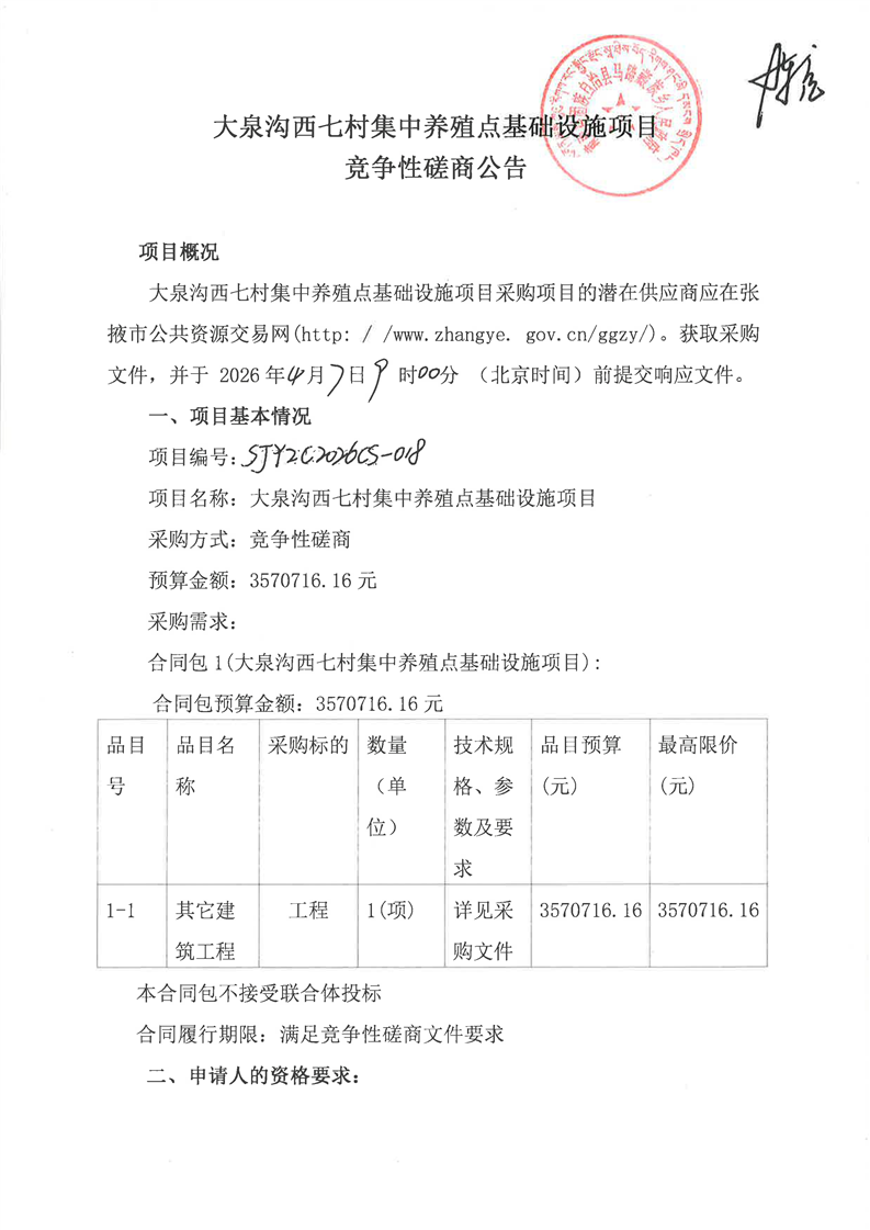 大泉沟西七村集中养殖点基础设施项目竞争性磋商公告[采购/资审公告]
