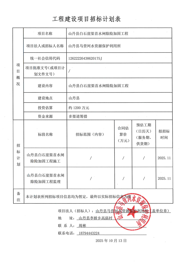山丹县白石崖渠首水闸除险加固工程招标计划