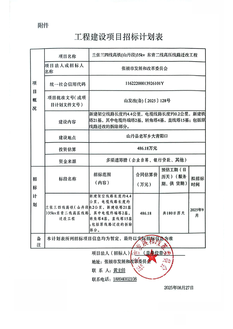 兰张三四线高铁(山丹段)**** 东青二线高压线路迁改工程招标计划