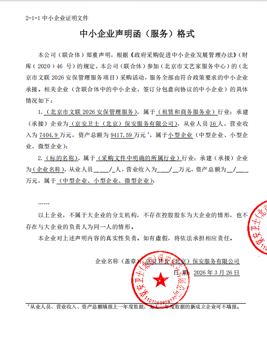 | 京安卫士(北京)保安服务有限公司 | * | ***.**万元 | ***.**万元 | 具体详见招标文件 |