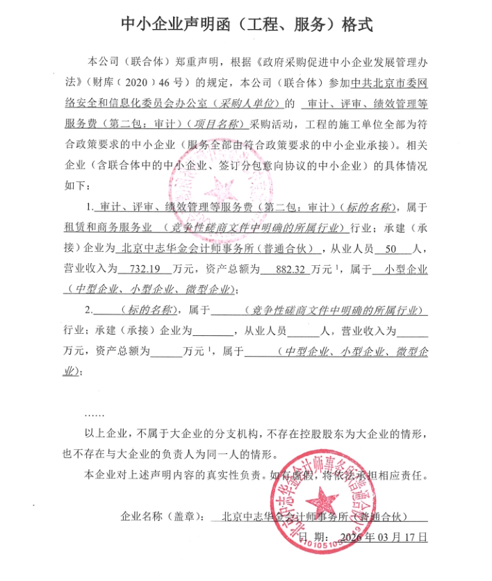 中标成交供应商名称:北京中志华金会计师事务所(普通合伙)