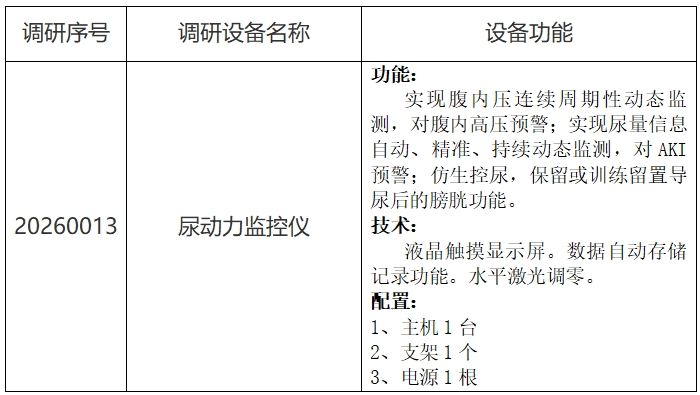 中日友好医院对尿动力监控仪设备市场调研公告