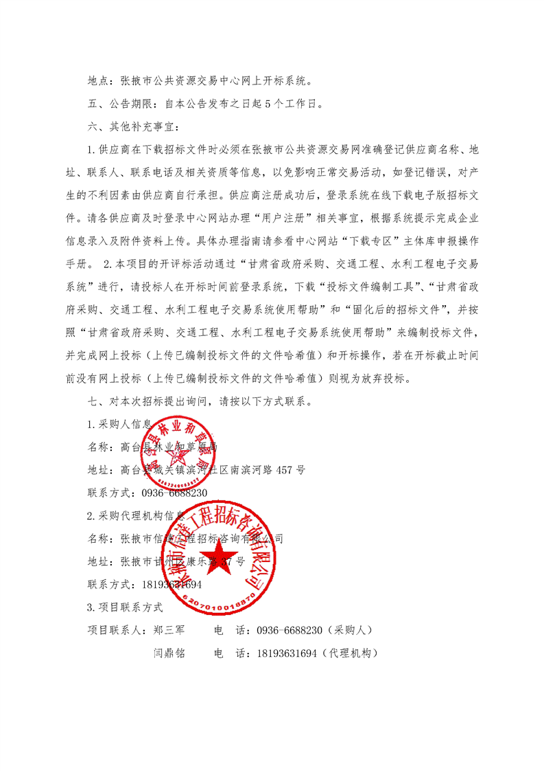甘肃/张掖 招标采购
